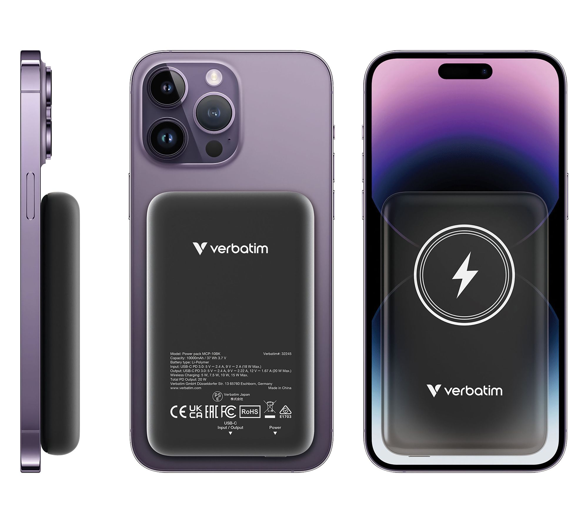 When life keeps you moving, this portable power bank is ready to keep your devices charged and in action. The 10,000mAh capacity, slim design, and strong magnetic wireless charging make it easy to top off your phone during busy commutes, outdoor adventures, or business trips, so you never miss a call, message, or memory. From Verbatim.