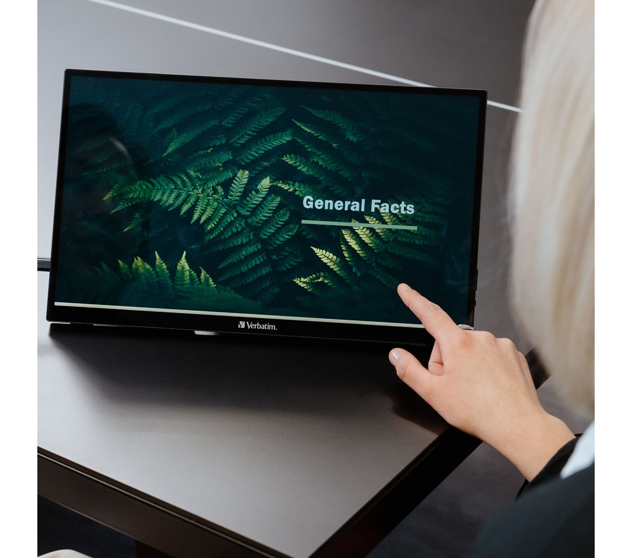 The Verbatim Portable Touchscreen Monitor is the perfect companion for your laptop, phone, or tablet, offering a responsive 15.6" Full HD display with 10-point touch functionality. Its lightweight design and built-in kickstand make it ideal for work, presentations, or gaming on the go. From Verbatim.