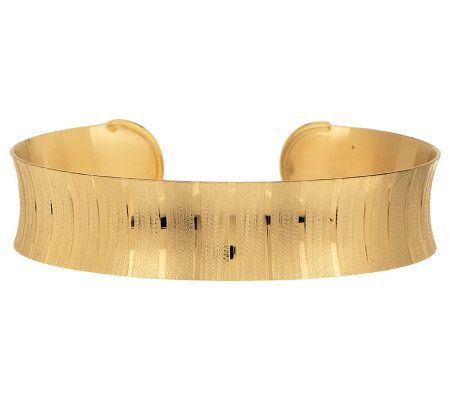 Show your stripes. Highly polished stripes alternate with satin-finished textured stripes along this magnificent cuff bracelet. Rounded ends and highly polished endcaps provide an exquisite finish. From Veronese Collection(R) Jewelry.