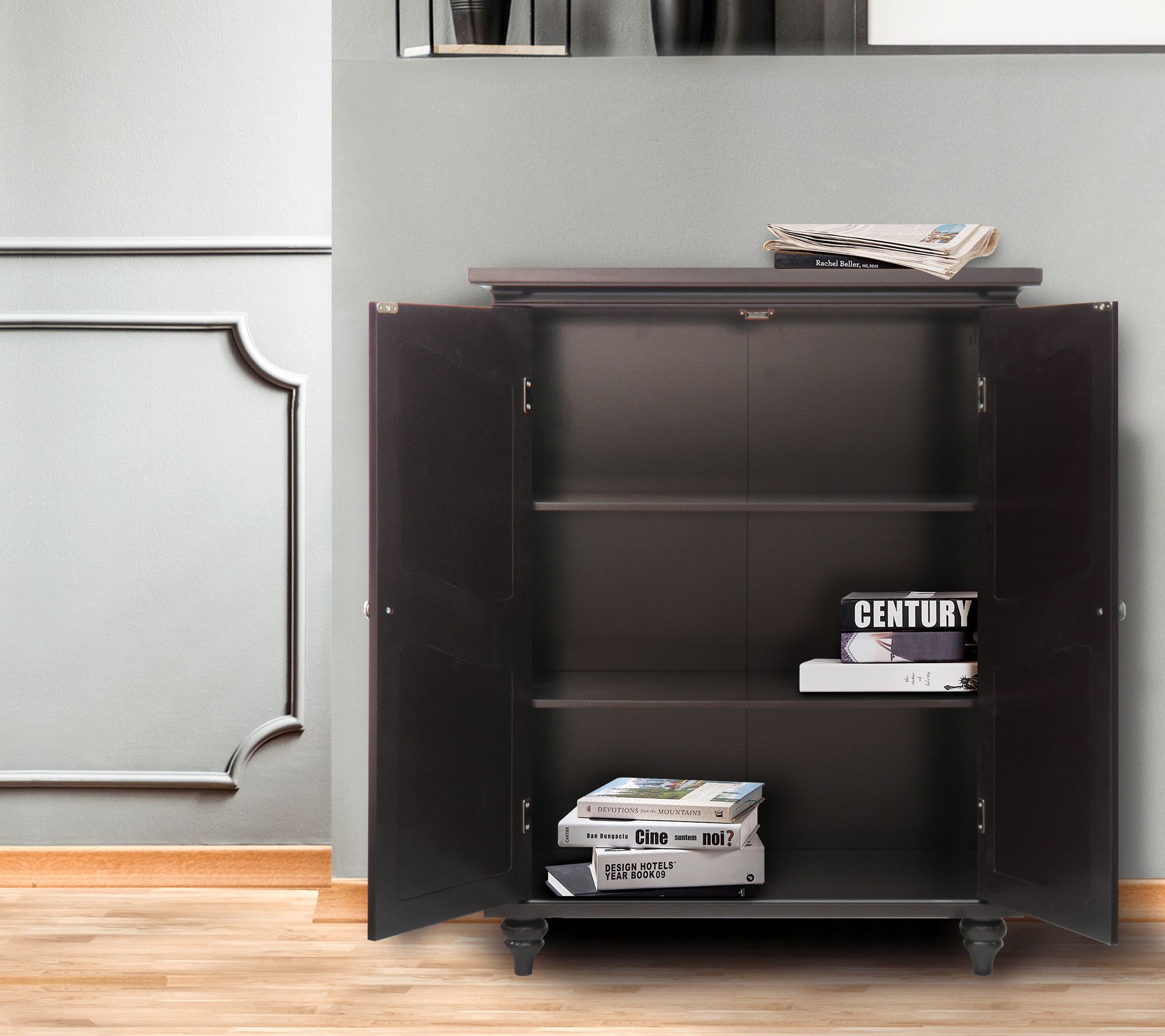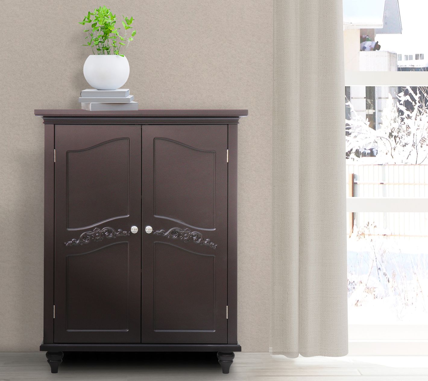 Solve your storage woes with the help of this stunning Versaille floor cabinet. Thoughtfully designed with shelves and doors, it's a versatile accent piece that's as beautiful as it is functional. From Elegant Home Fashions.