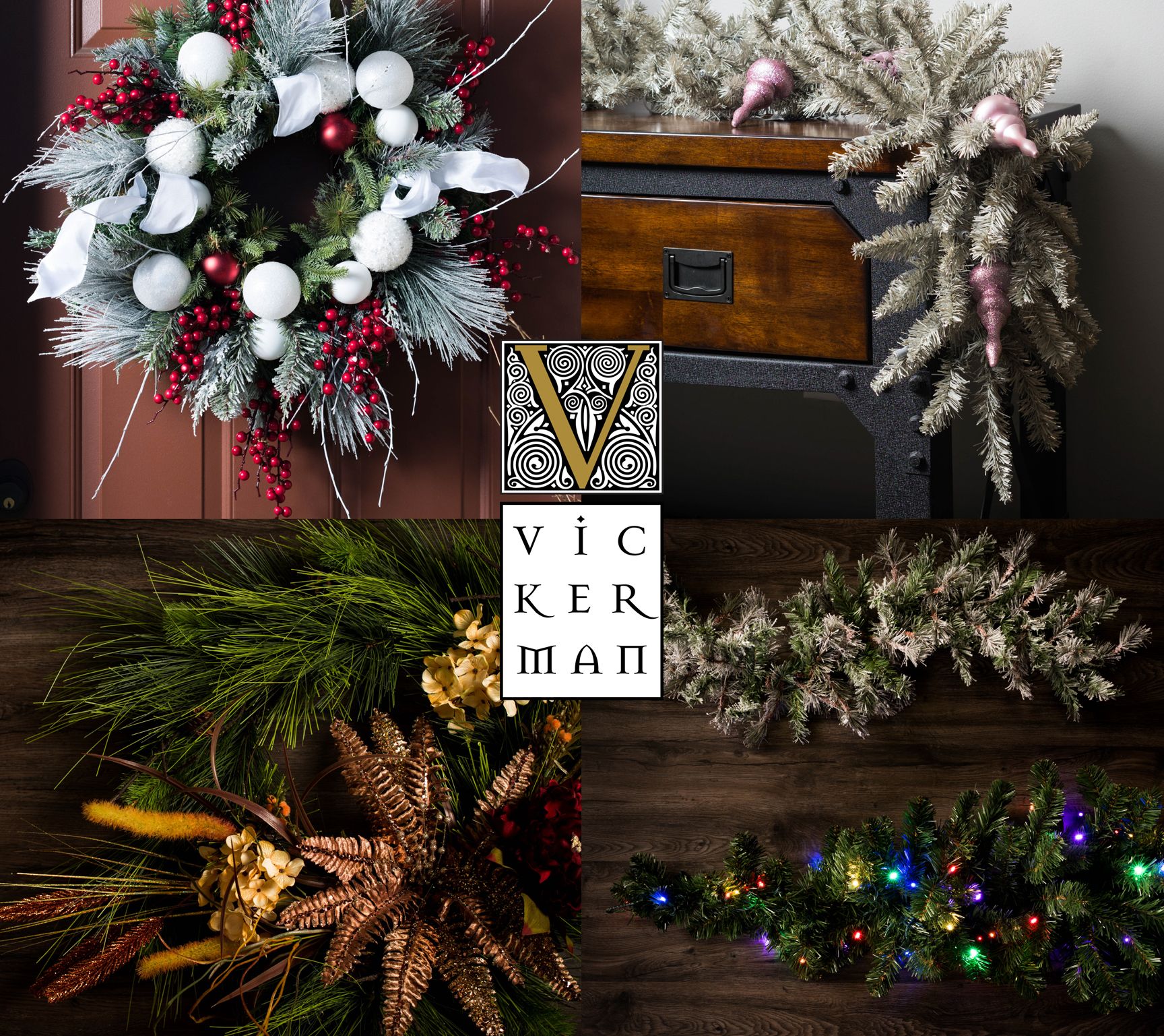 Enchant your entryway or spruce up the area above your mantel with this festive set of Christmas wreaths. These lifelike wreaths are sure to spread the merriment of the season wherever you place them and will last for many holidays to come. From Vickerman.