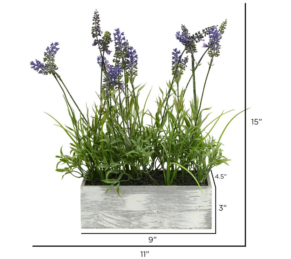 Vickerman 15" Artificial Lavender Plant in WoodRectangle Pot