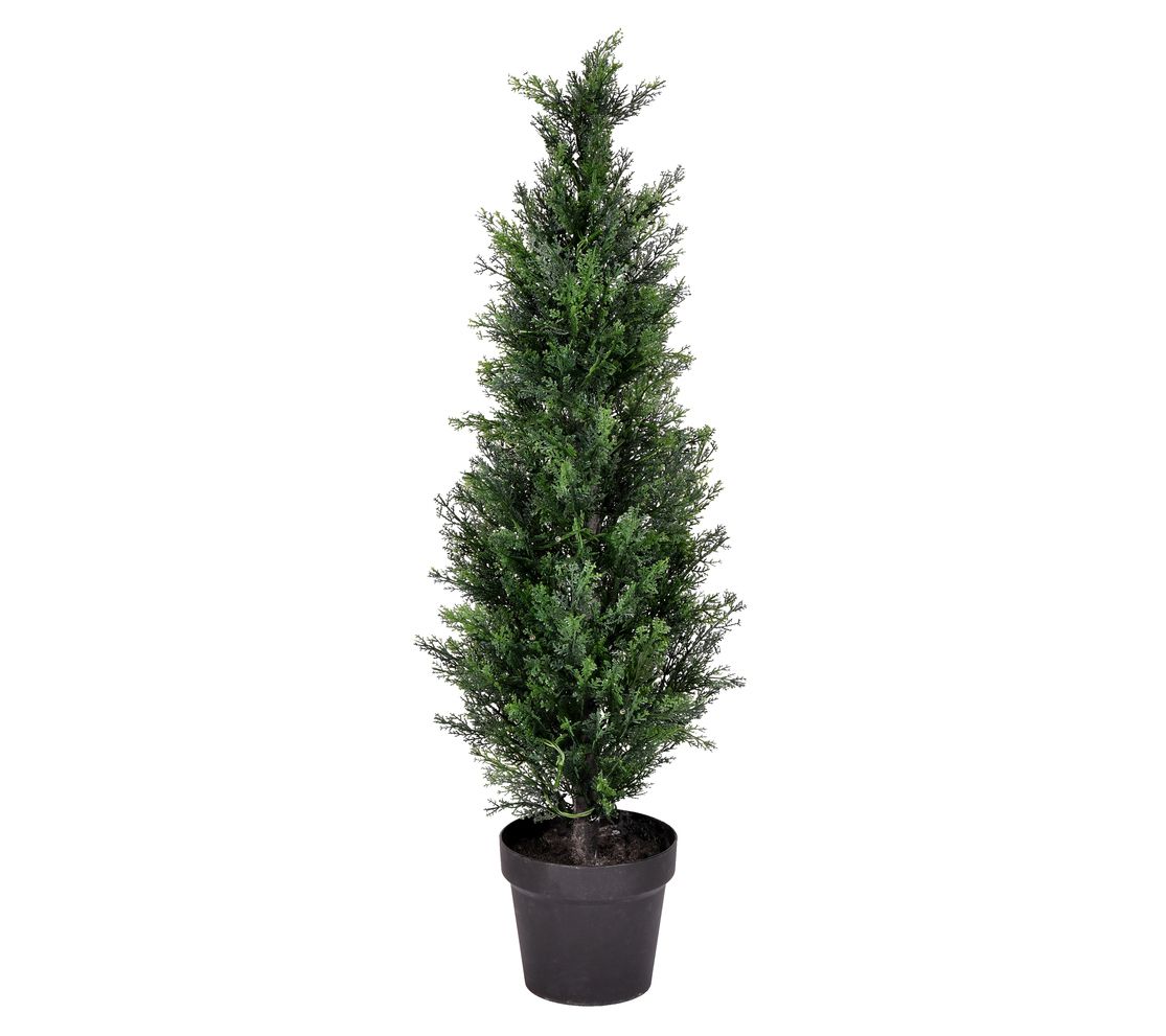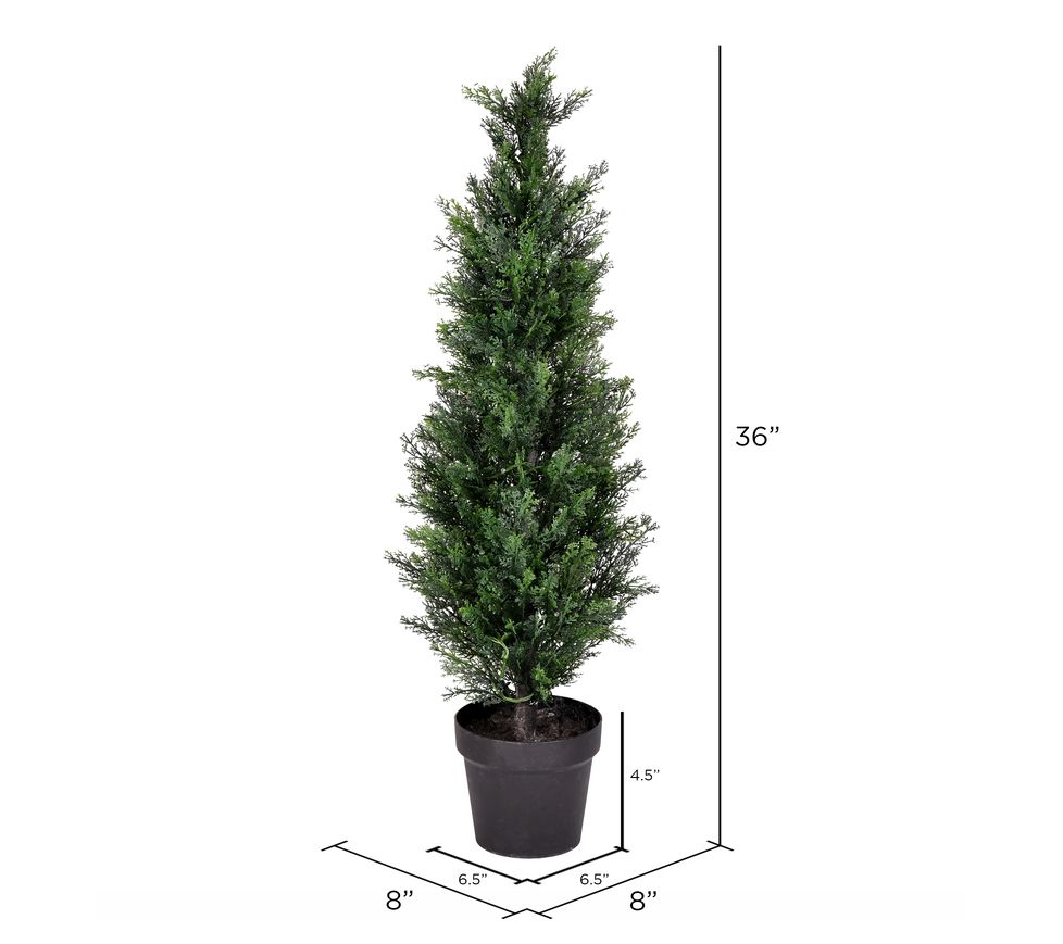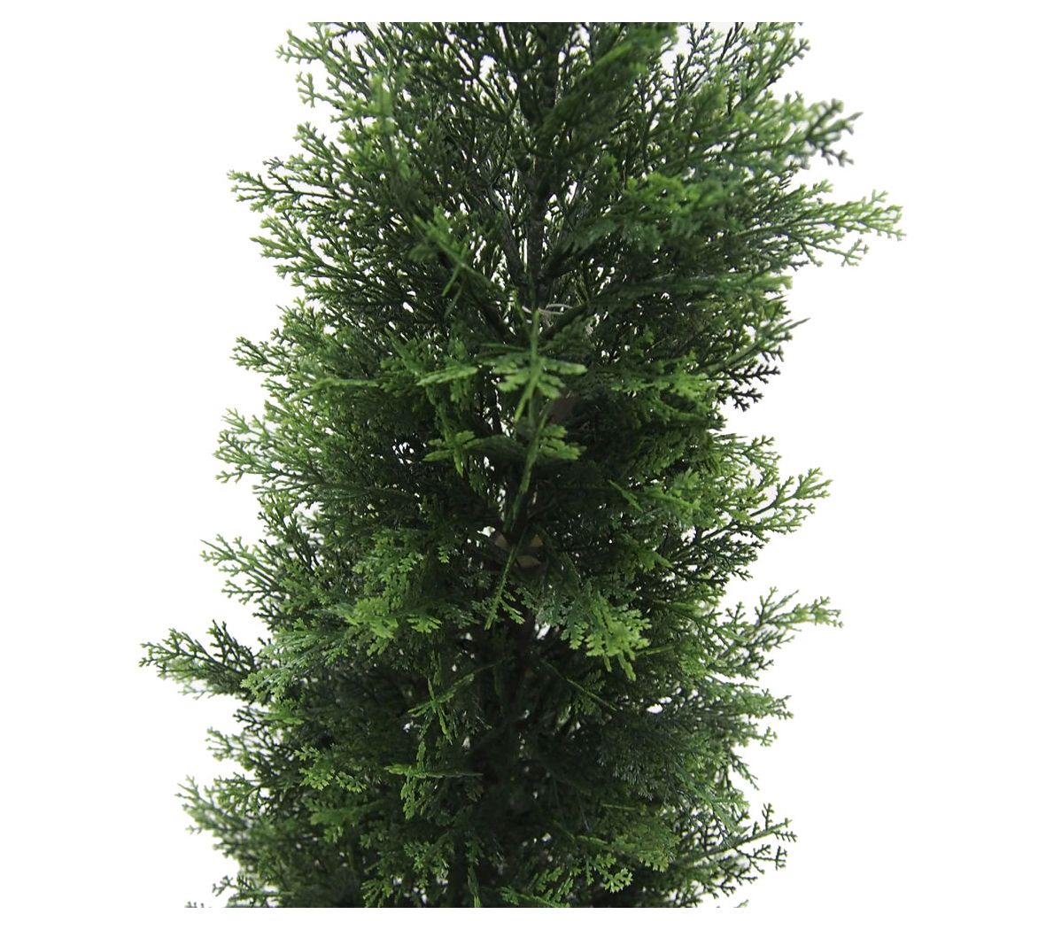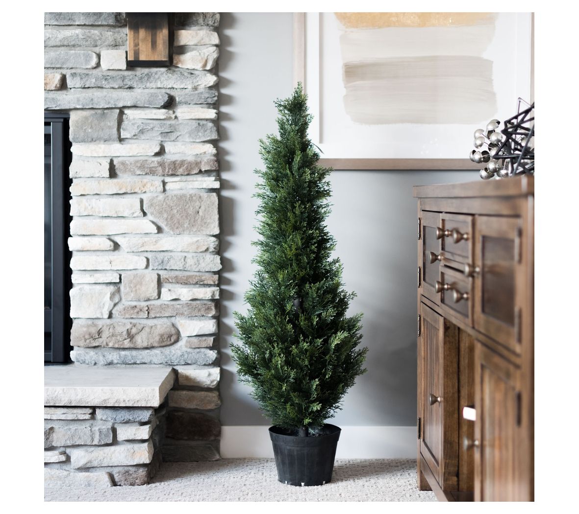 With lush green foliage and a pot that pops right into a decorative planter or basket, this faux cedar tree is a great way to bring instant elegance to a living room, office, or entryway. From Vickerman.