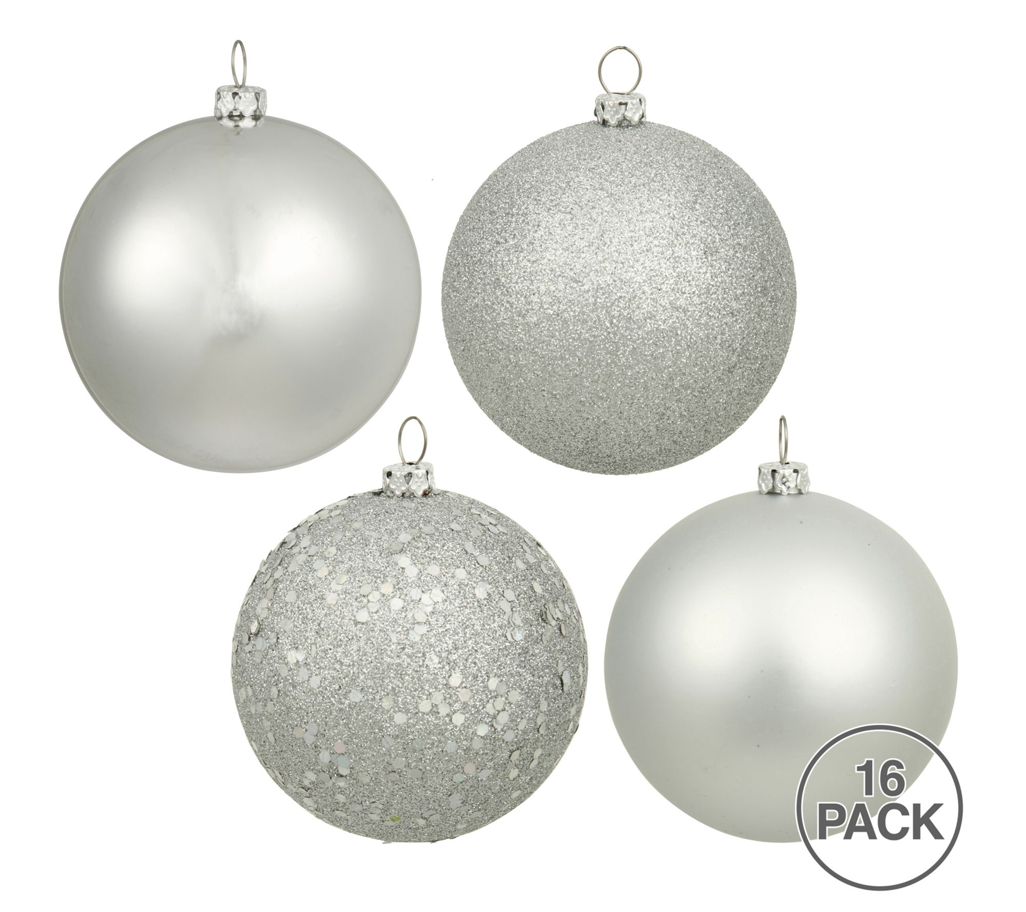 Vickerman 3" Silver 4-Finish Ball Ornament Set