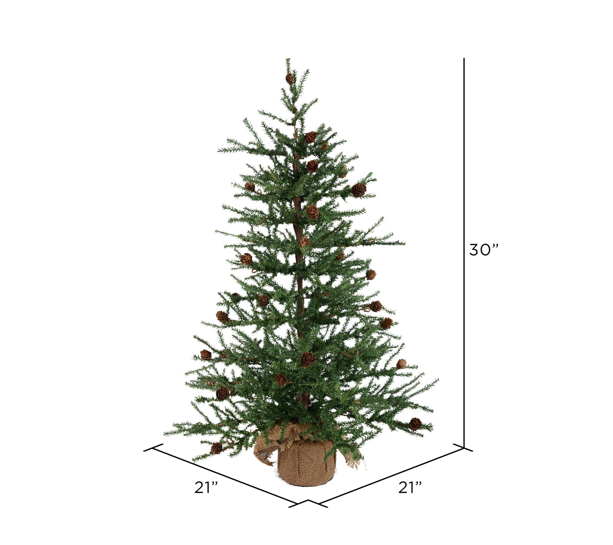 With its fresh-looking green branches, pinecone accents, 684 tips, and charmingly rustic burlap base, this unlit Carmel artificial pine is ready to add some magic to your holiday season. From Vickerman.