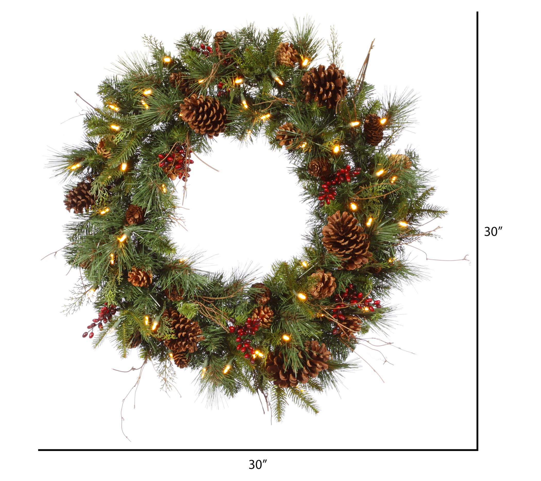 • Lifelike prelit Cibola mixed berry wreath with pinecones and twigs