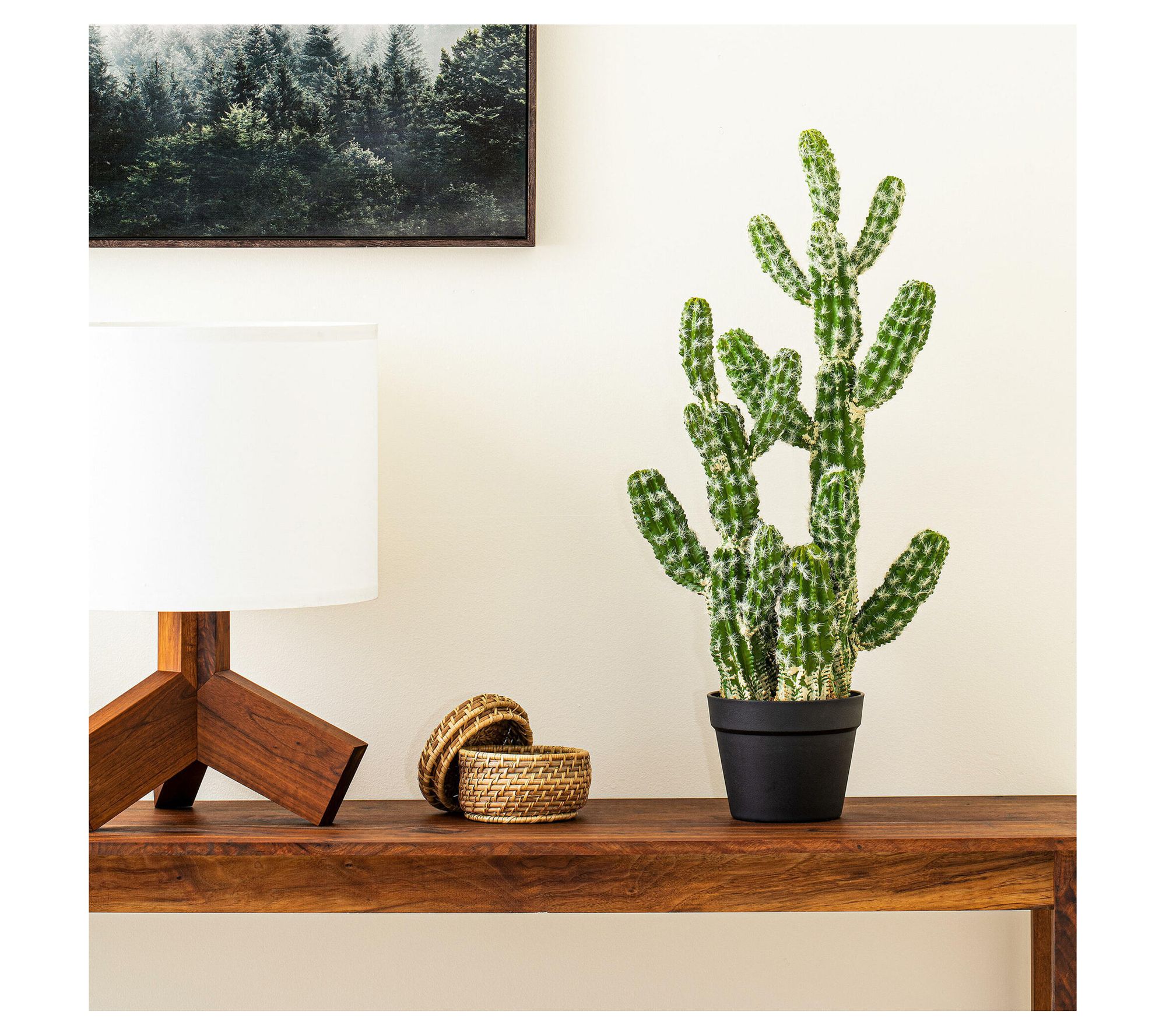 Bring the serene beauty of the desert into your home with the Vickerman faux green potted cactus. This lifelike plant, nestled in a sleek black planter, offers a maintenance-free splash of greenery and southwestern charm to any room, without the need for sunlight or water. From Vickerman.