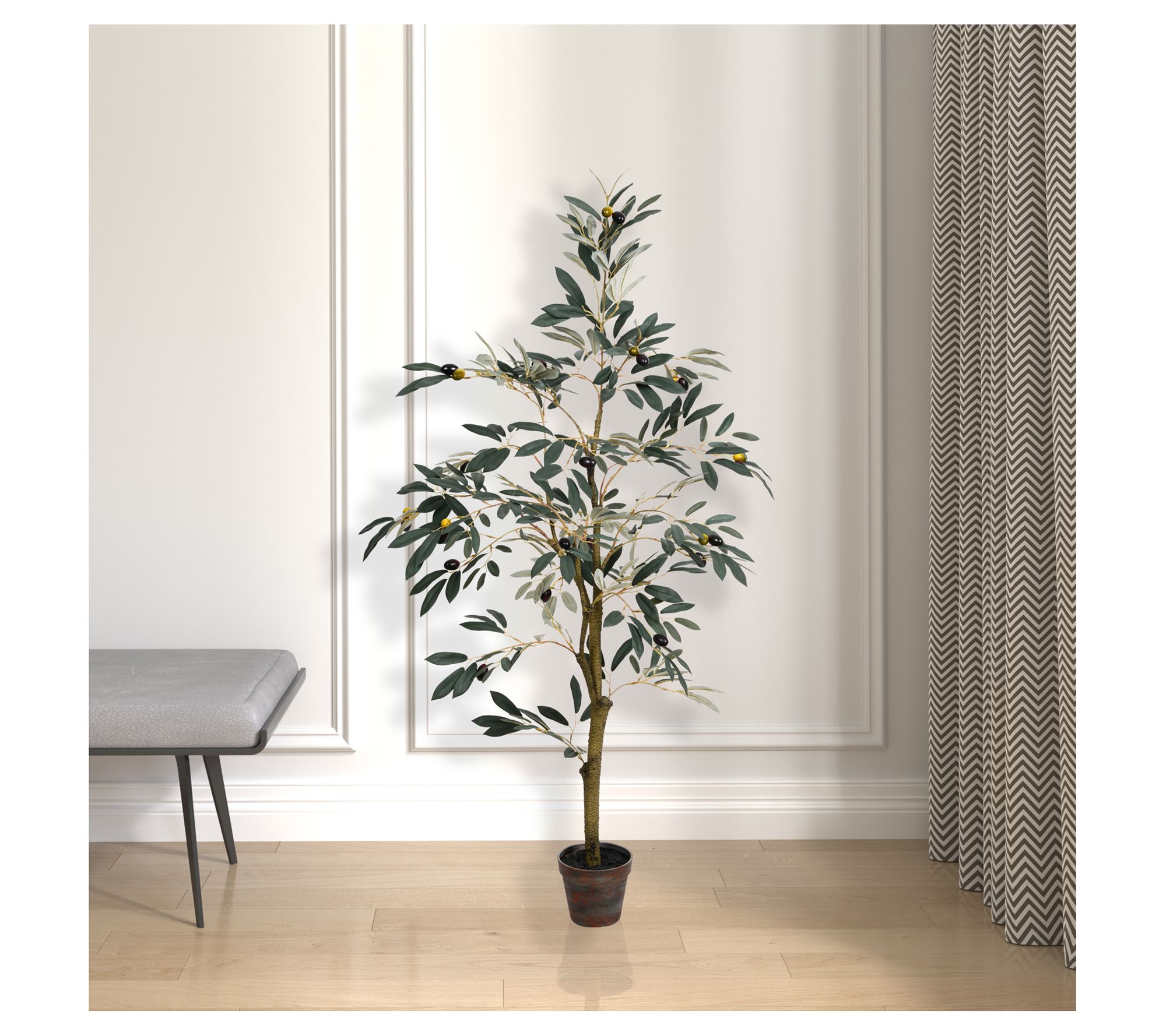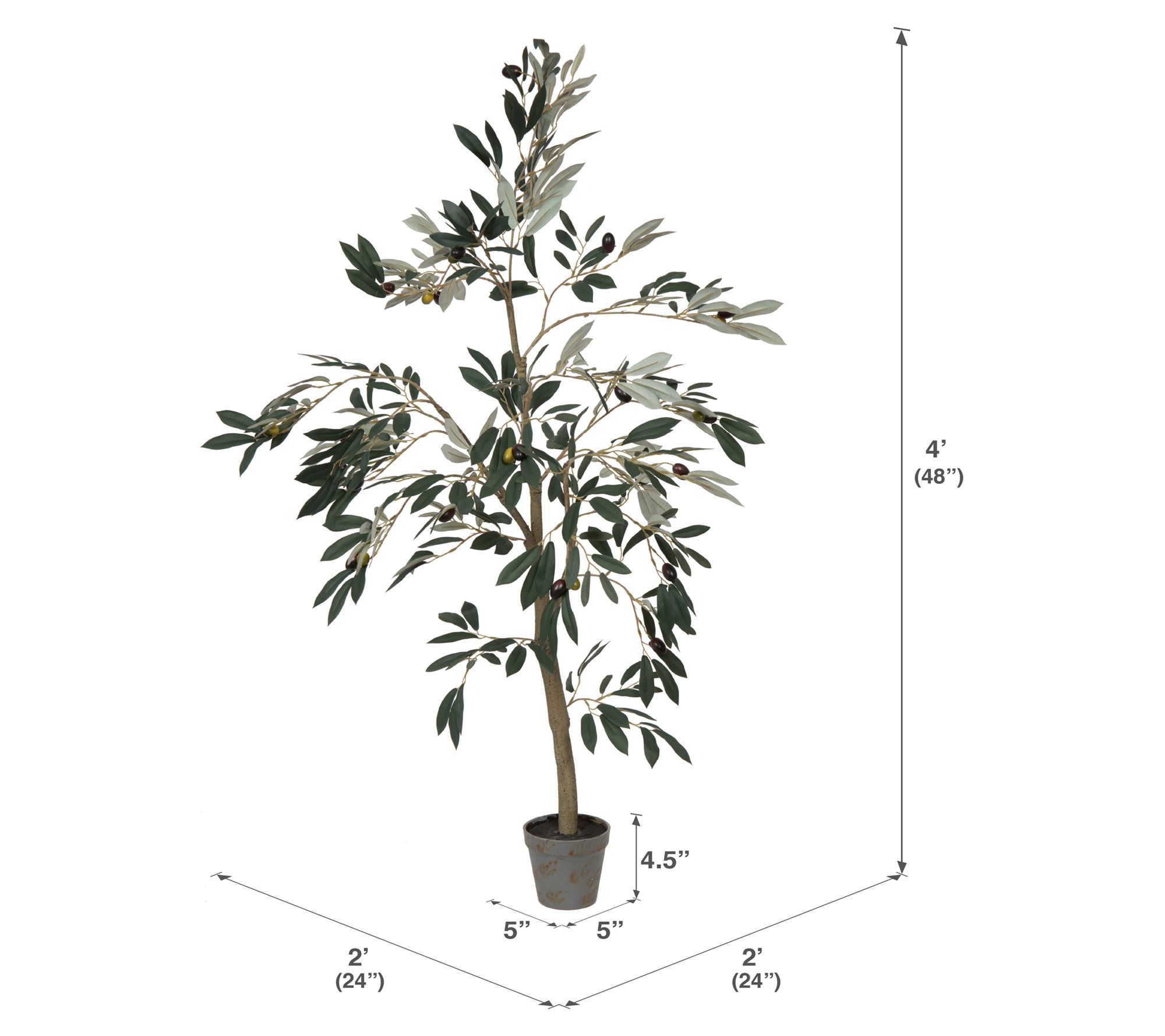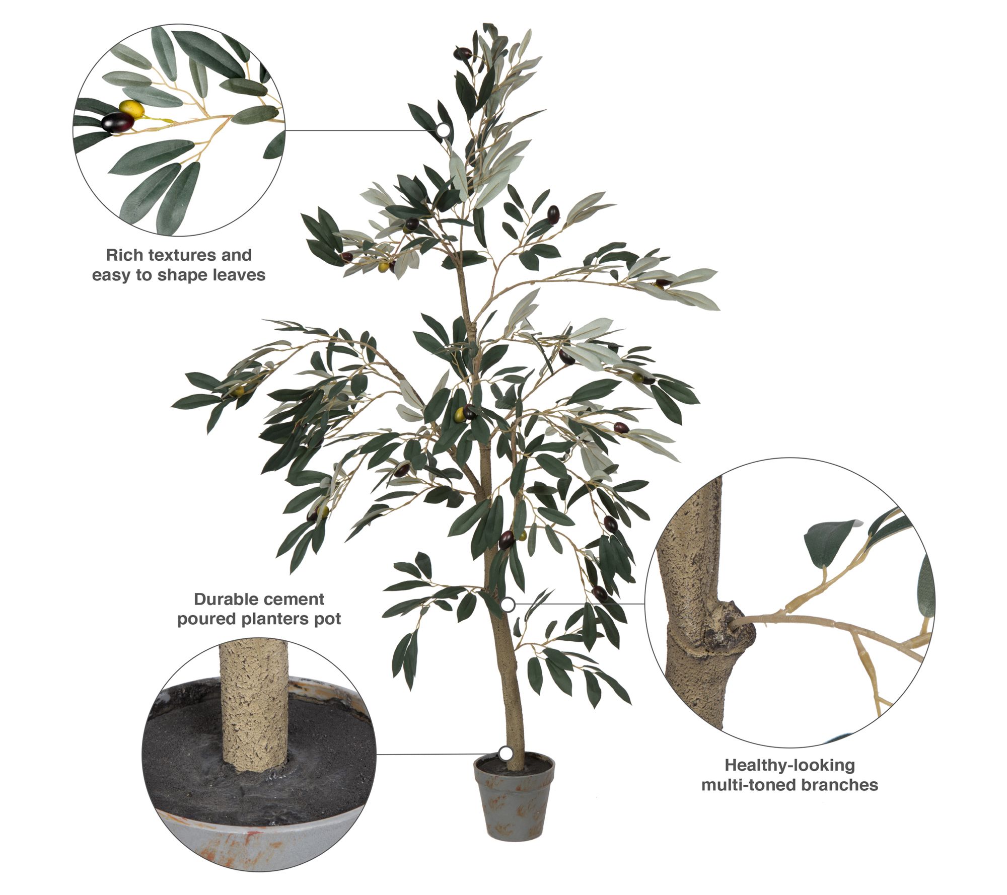 • Includes artificial olive tree and black plastic insertable pot