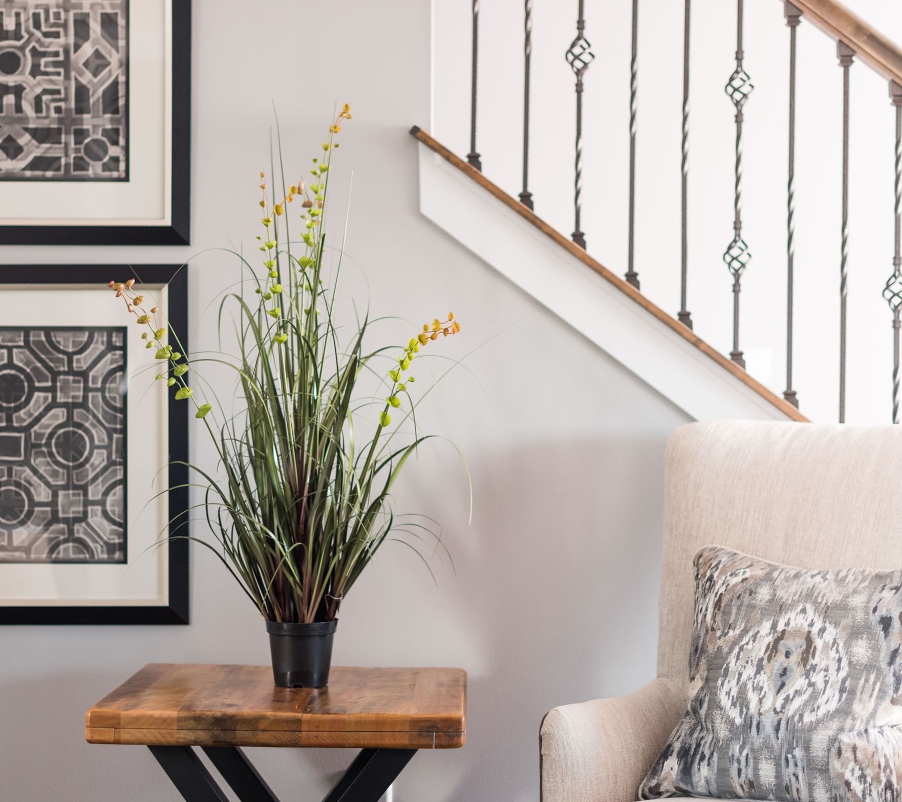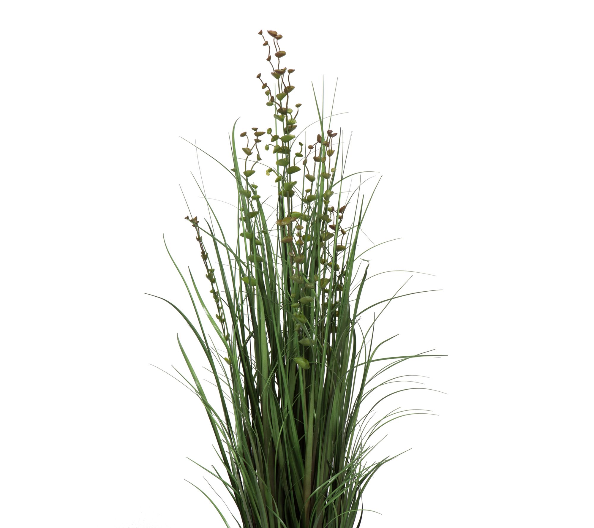 • Includes artificial green grass and eucalyptus arrangement and black plastic insertable pot