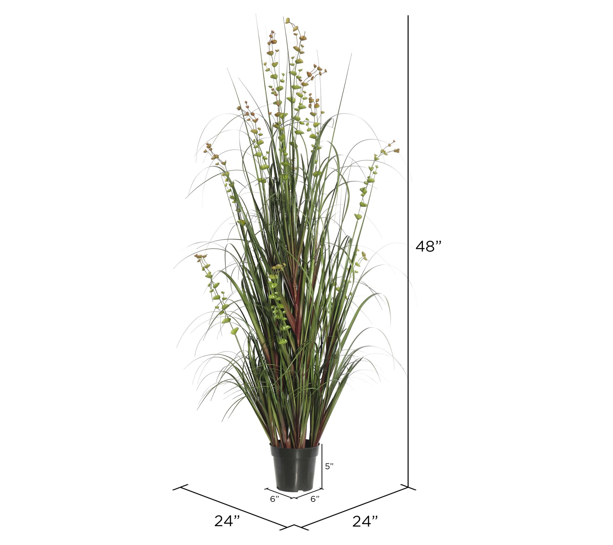 • Approximate measurements: Plant 48" x 24" x 24"; Pot 6"Diam x 5"H; weighs 80 oz