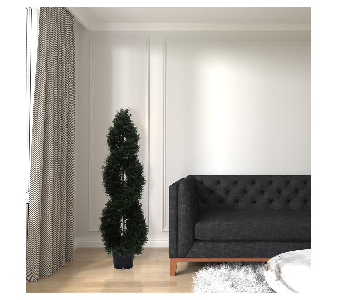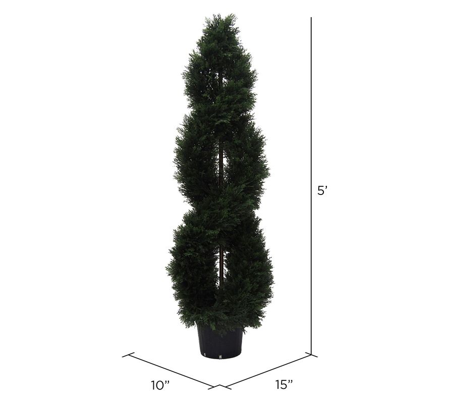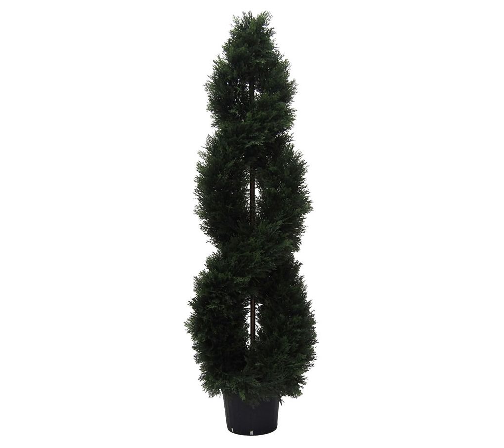 • Includes faux cedar spiral topiary in a pot