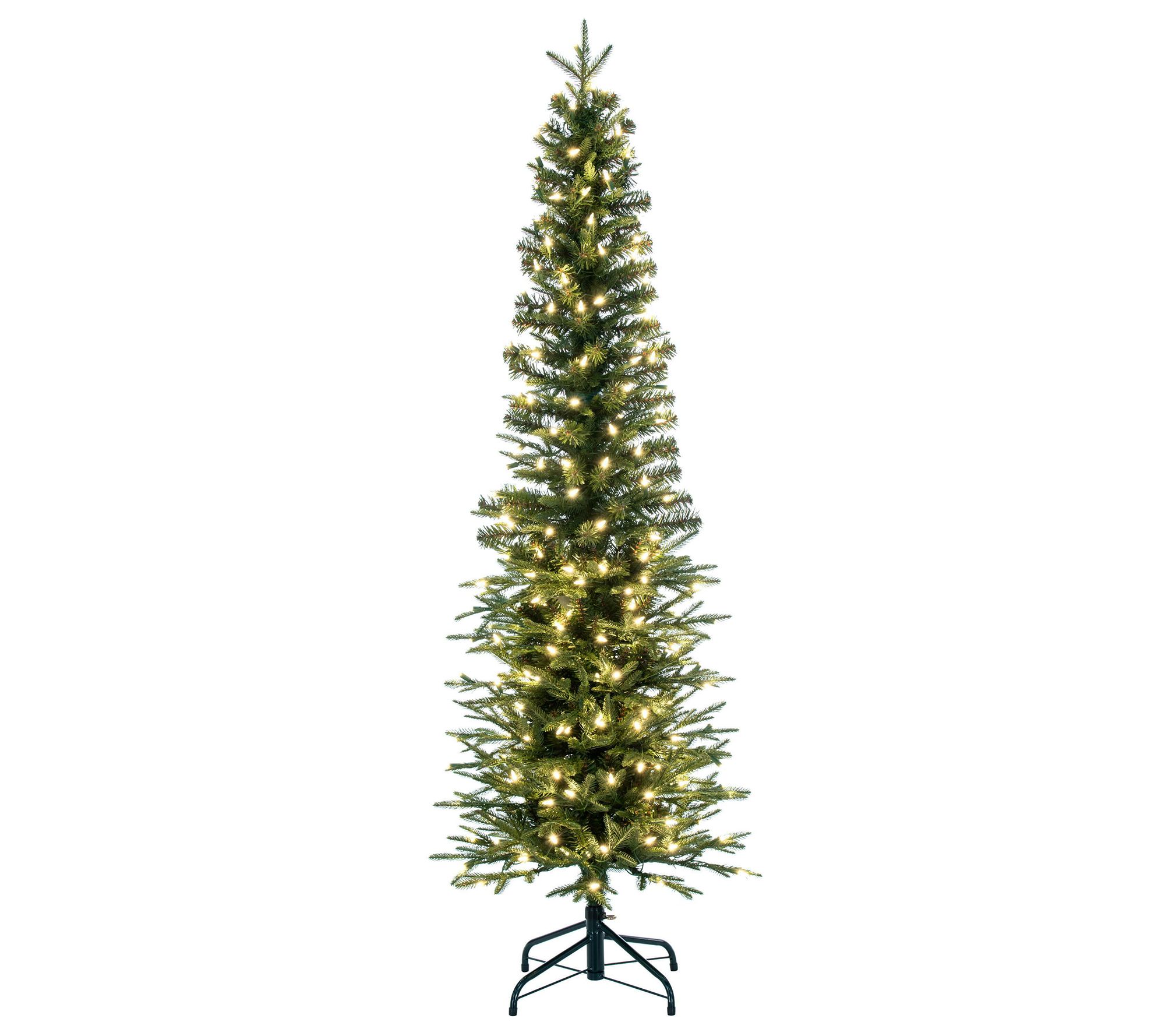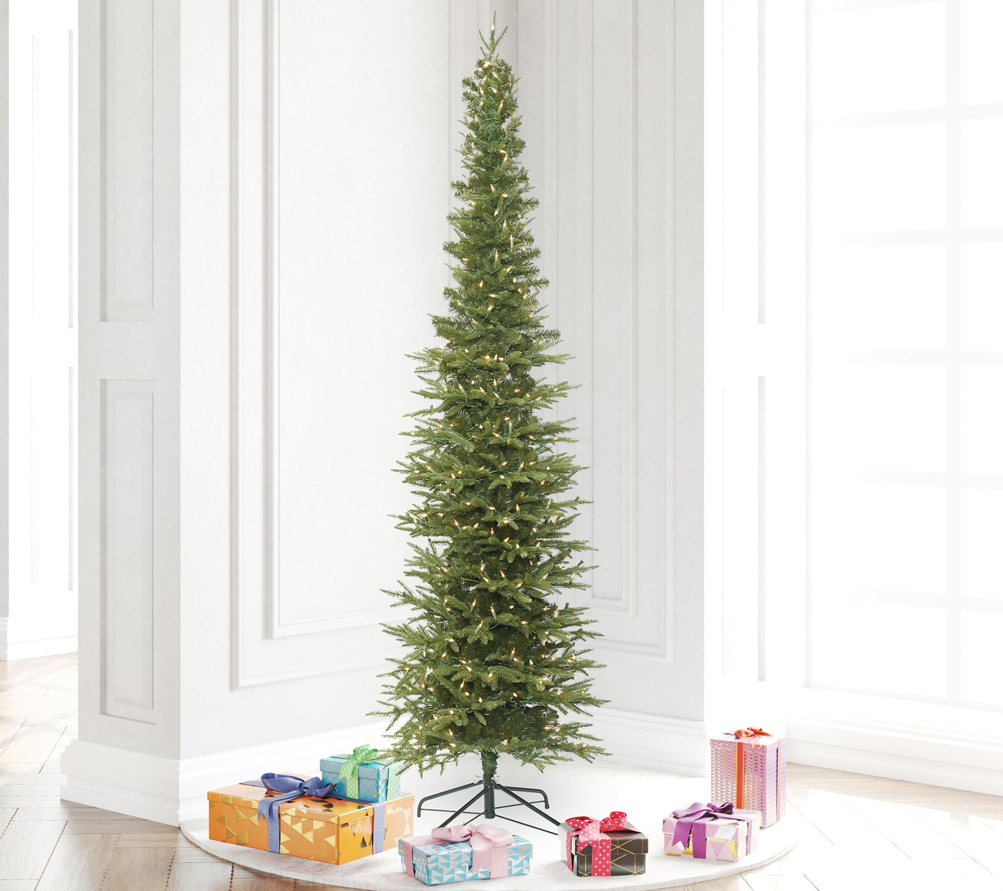 Setting up for the holidays feels effortless when this slim, pre-lit faux fir transforms even small spaces into a festive retreat. Warm LED lights sparkle across lush, green branches, creating a cozy glow for gatherings, movies, or quiet winter nights. A sturdy stand and pedal switch keep things simple, so you can focus on making new memories. From Vickerman.