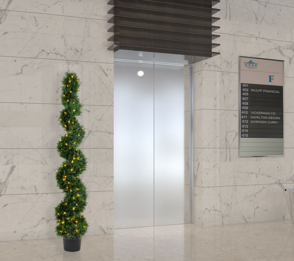 Light up your entryway with this realistic spiral topiary that welcomes guests with a warm glow. From Vickerman.