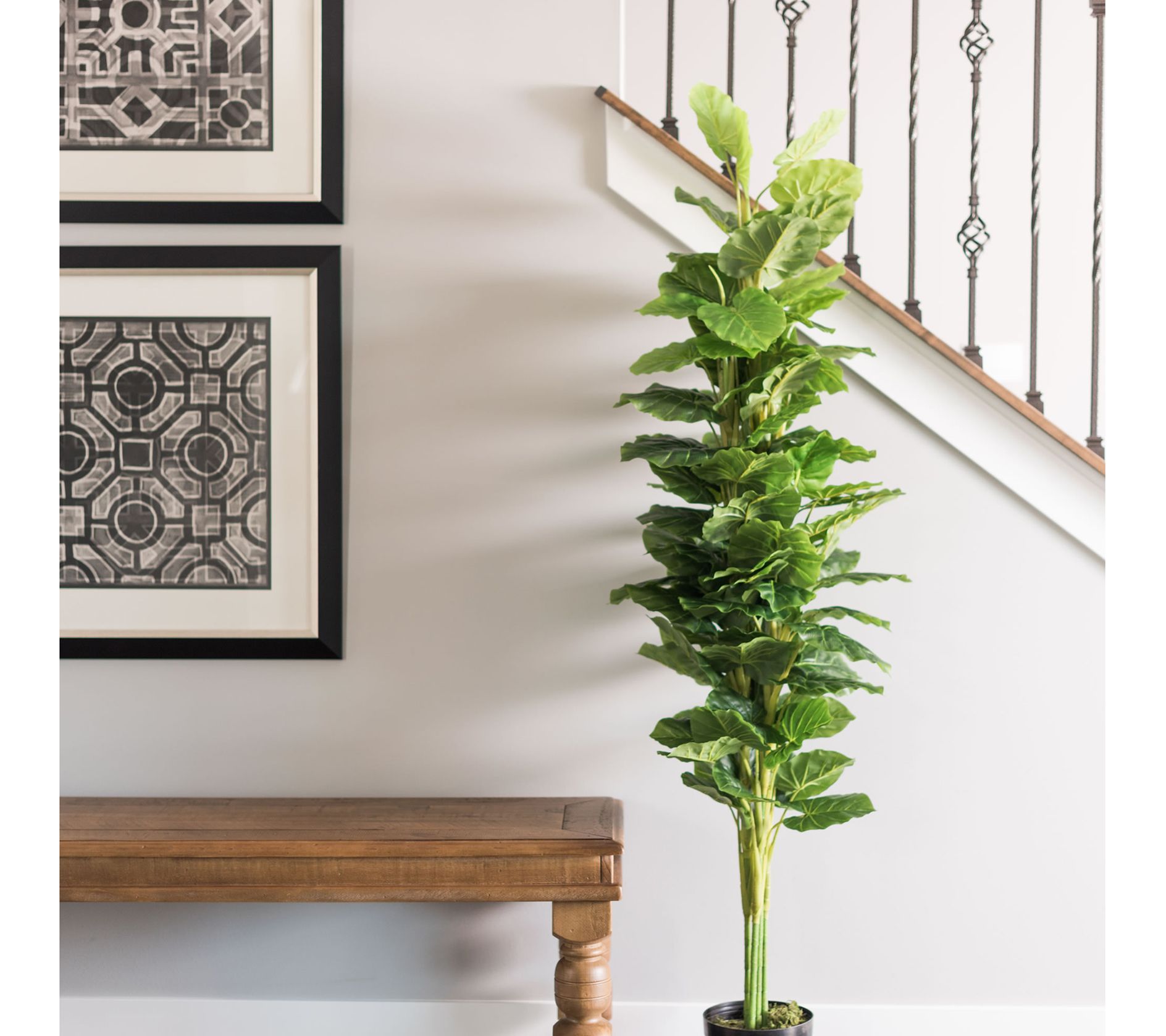 Bring the lush look of the tropics into your home with the Vickerman 64" artificial fresh-looking green philodendron. Perfect for adding a touch of greenery without the maintenance, this lifelike plant comes in a sleek black pot, ready to be placed in your favorite decorative container. From Vickerman.