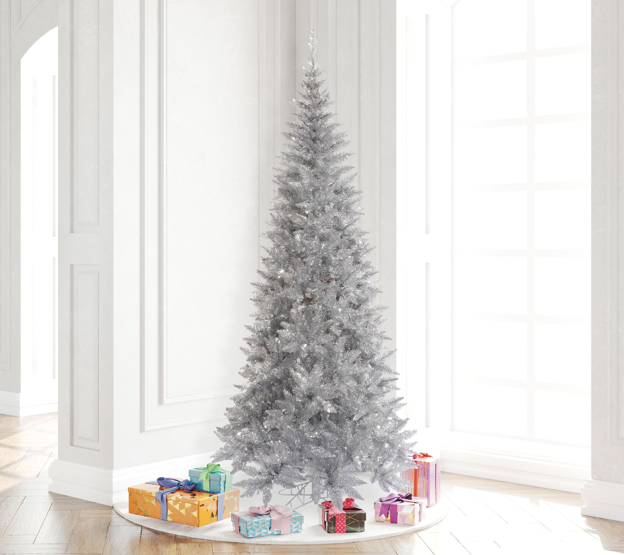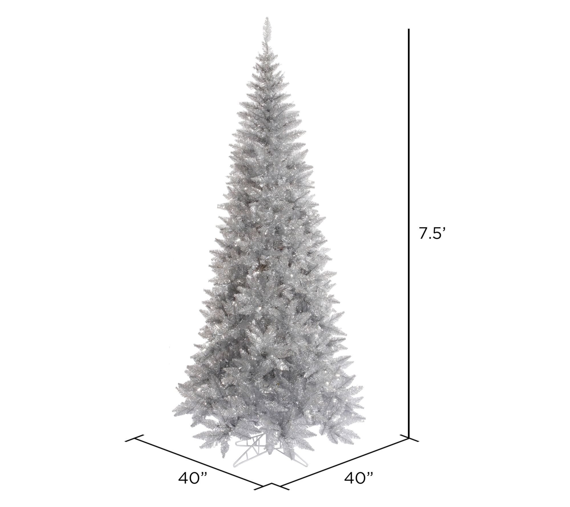 Vickerman 7.5' Silver Tinsel Fir Slim Artificial Unlit Tree