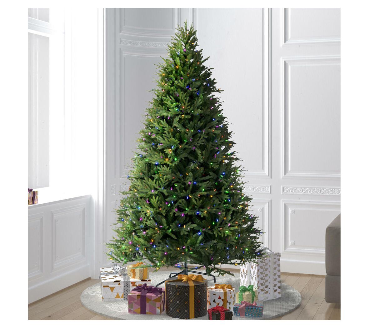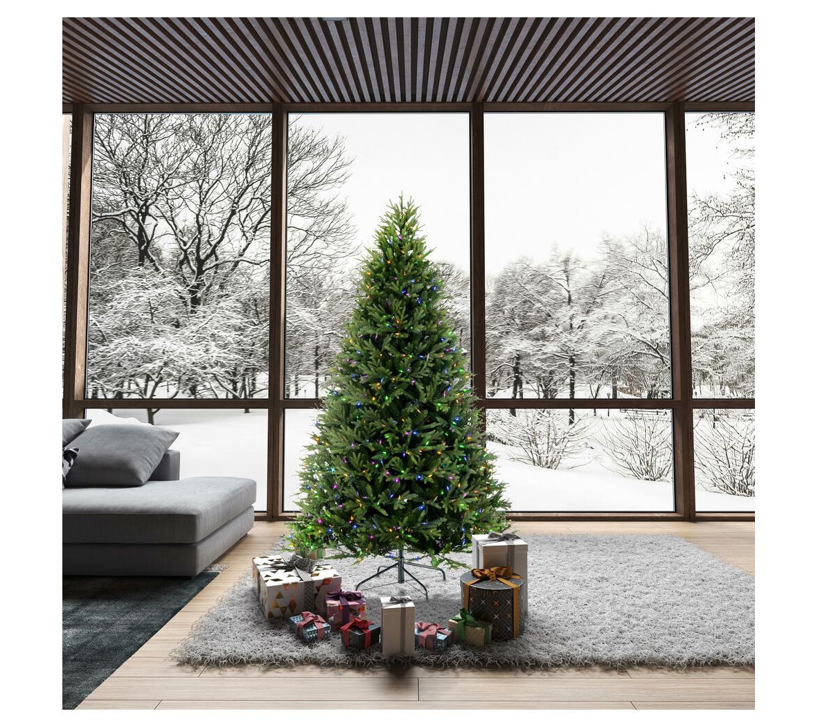 Set up a stunning centerpiece for your interior space with this realistic holiday tree that arrives pre-lit with color-changing lights. From Vickerman.