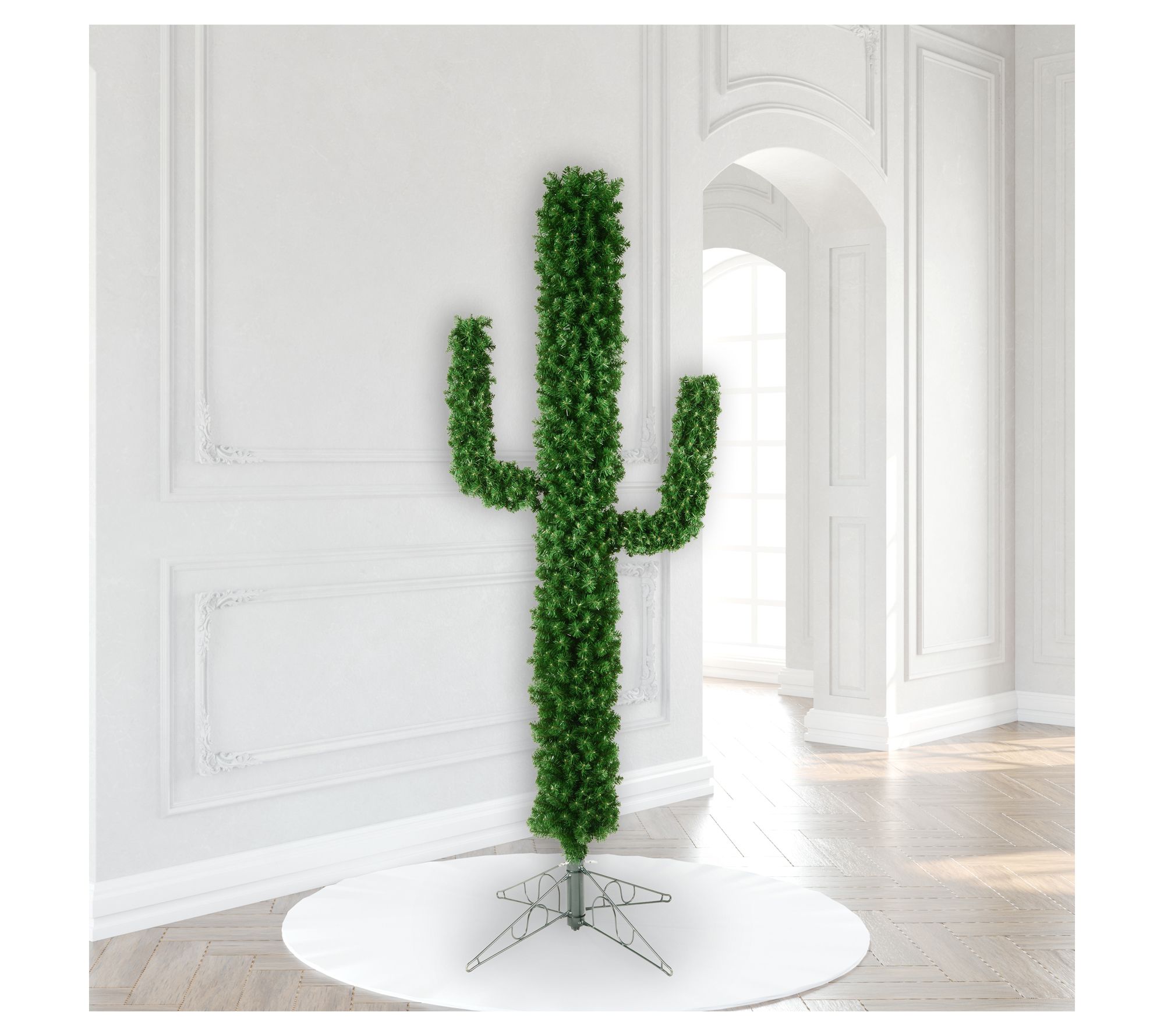 Standing tall and full of personality, this cactus-inspired tree puts a playful spin on holiday decorating -- from modern lofts to desert retreats. Arrange your favorite ornaments on its 1,200 lifelike tips, or keep the look minimal for whimsical style that lasts all season long. A sturdy stand comes included for easy setup each year. From Vickerman.