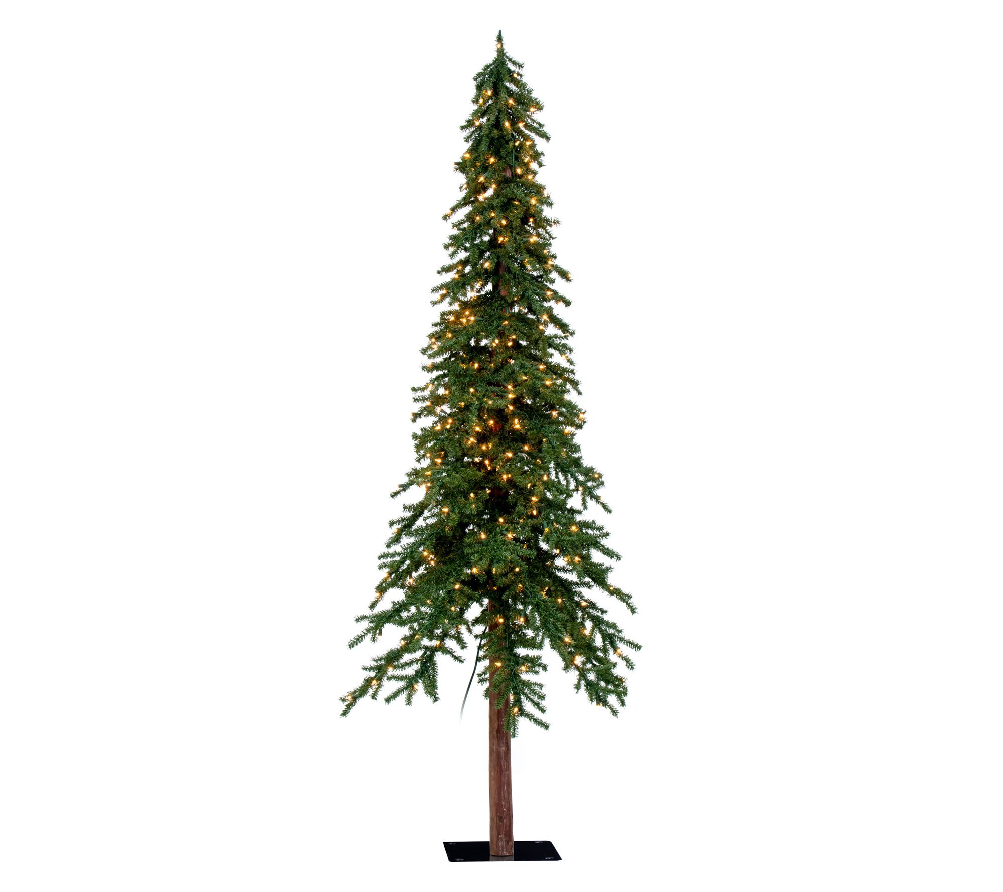 The magic of the season shines extra bright with this lush, lifelike alpine tree aglow with hundreds of warm white lights. Picture it bringing cozy elegance to your home -- ready for cherished ornaments, rustic ribbons, or as a glowing backdrop for family traditions. Step on the included foot pedal to light up every holiday moment with ease. From Vickerman.