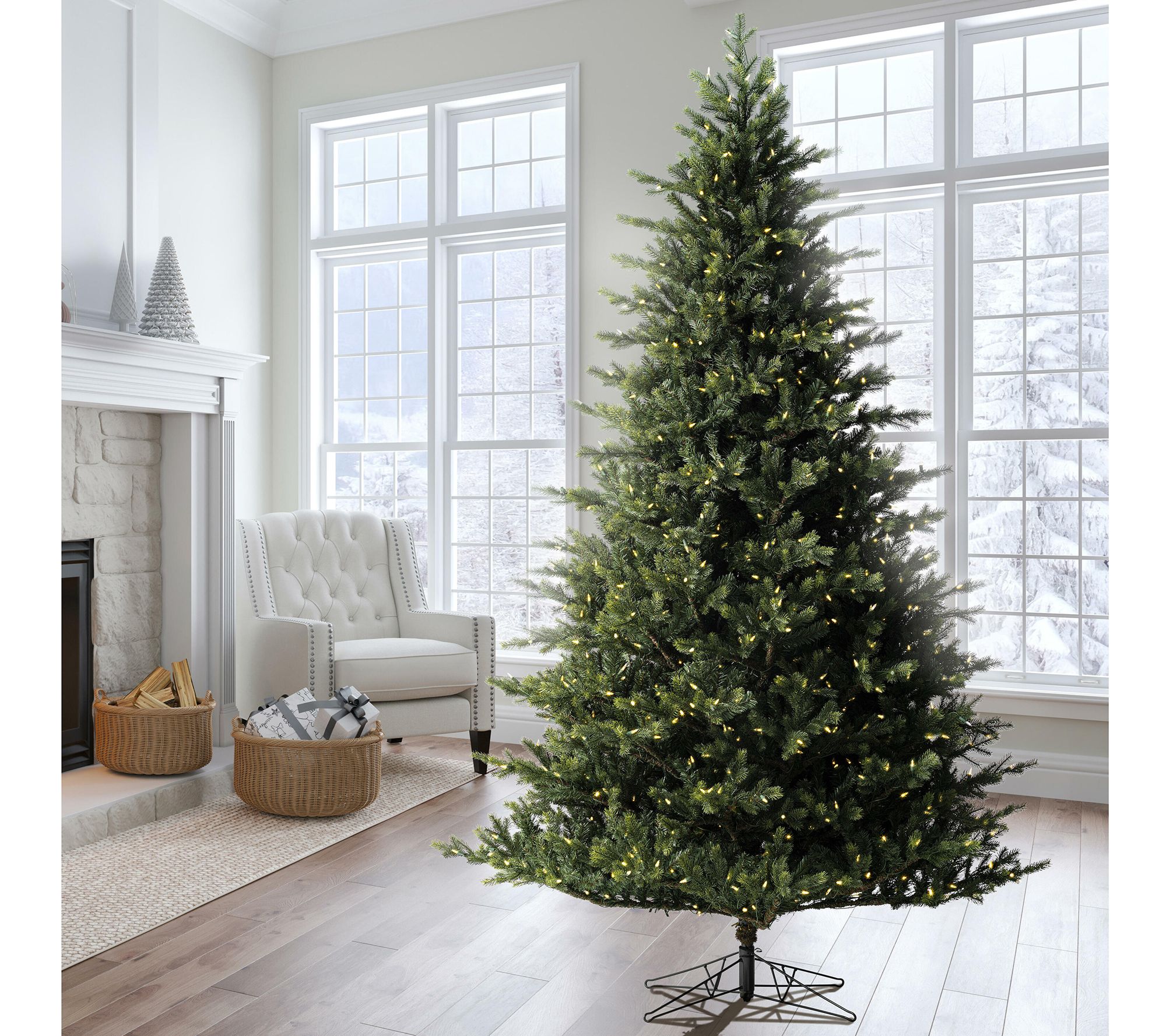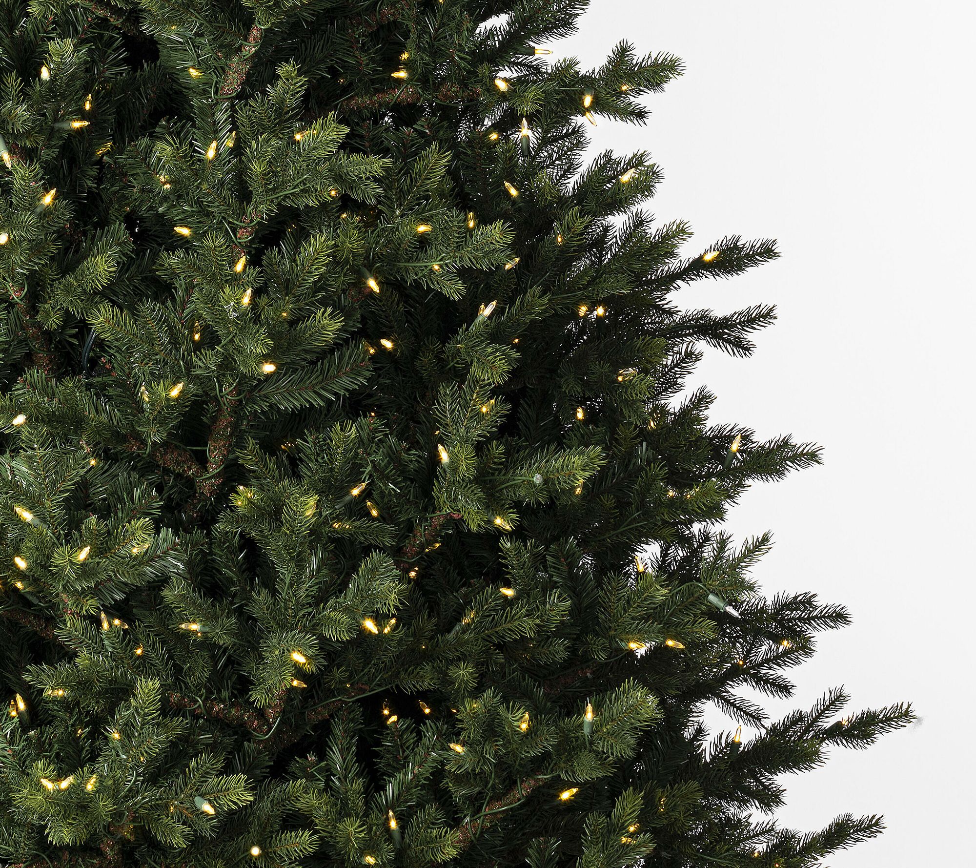 Vickerman's Welch Fraser Fir lifelike Christmas tree brings the beauty of the holidays into your home with 1,200 warm white Dura-lit LED mini lights and 5,003 tips. This prelit tree features a blend of rich green tips on metal hinged branches, and includes a convenient on/off step switch and metal tree stand. From Vickerman.