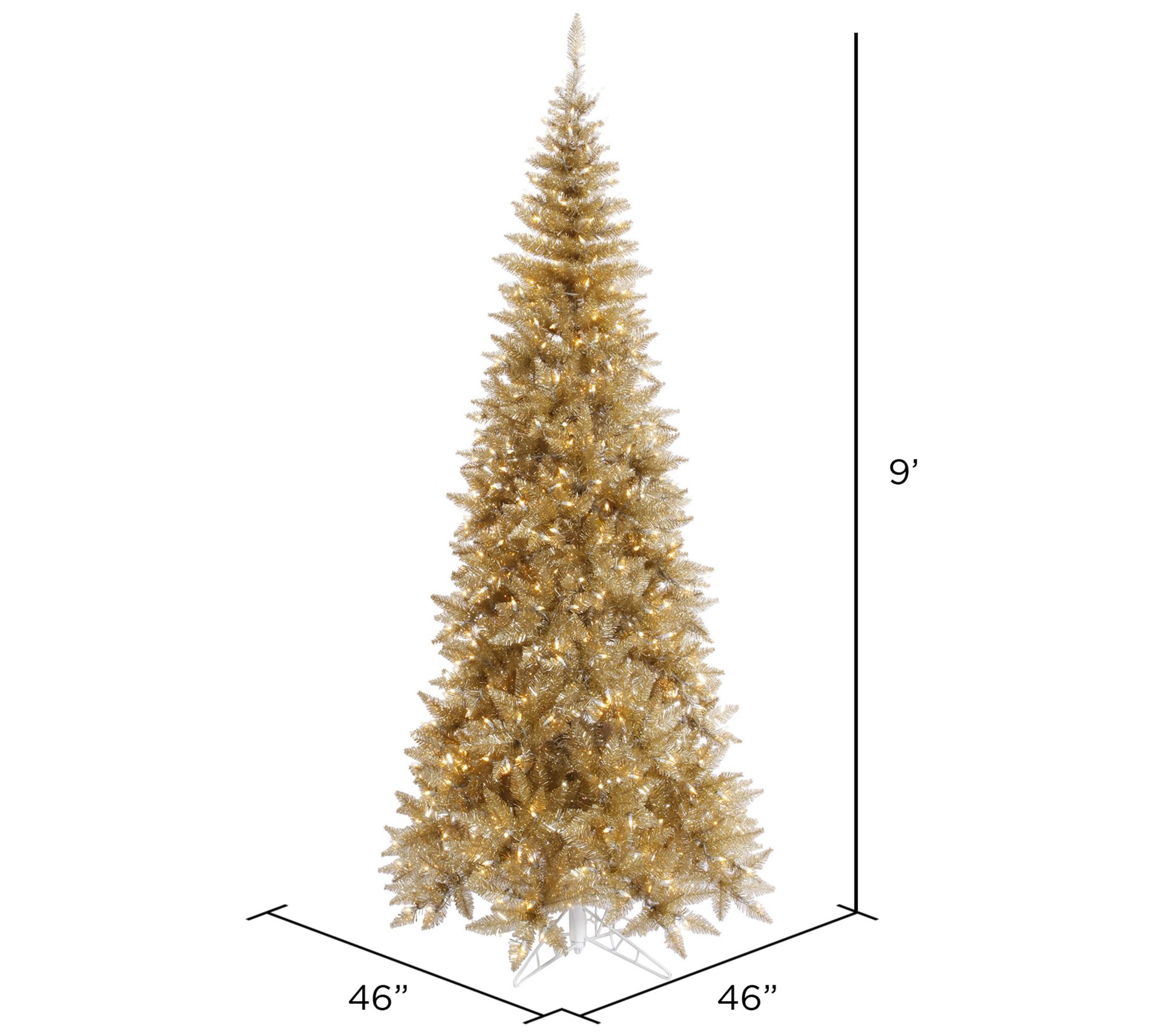 Vickerman 9' Champagne Tinsel Fir Slim Artificial Pre-Lit Tree
