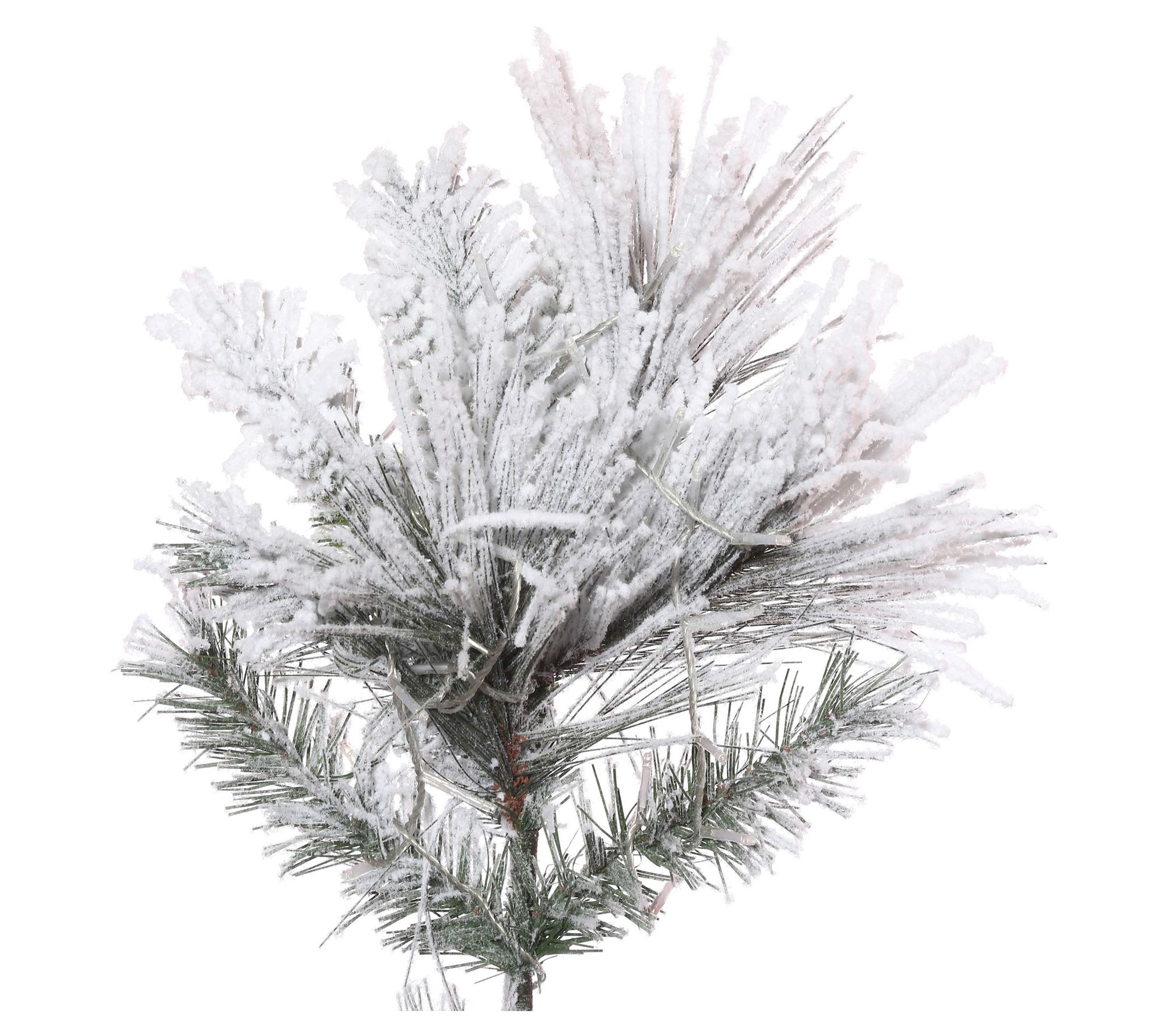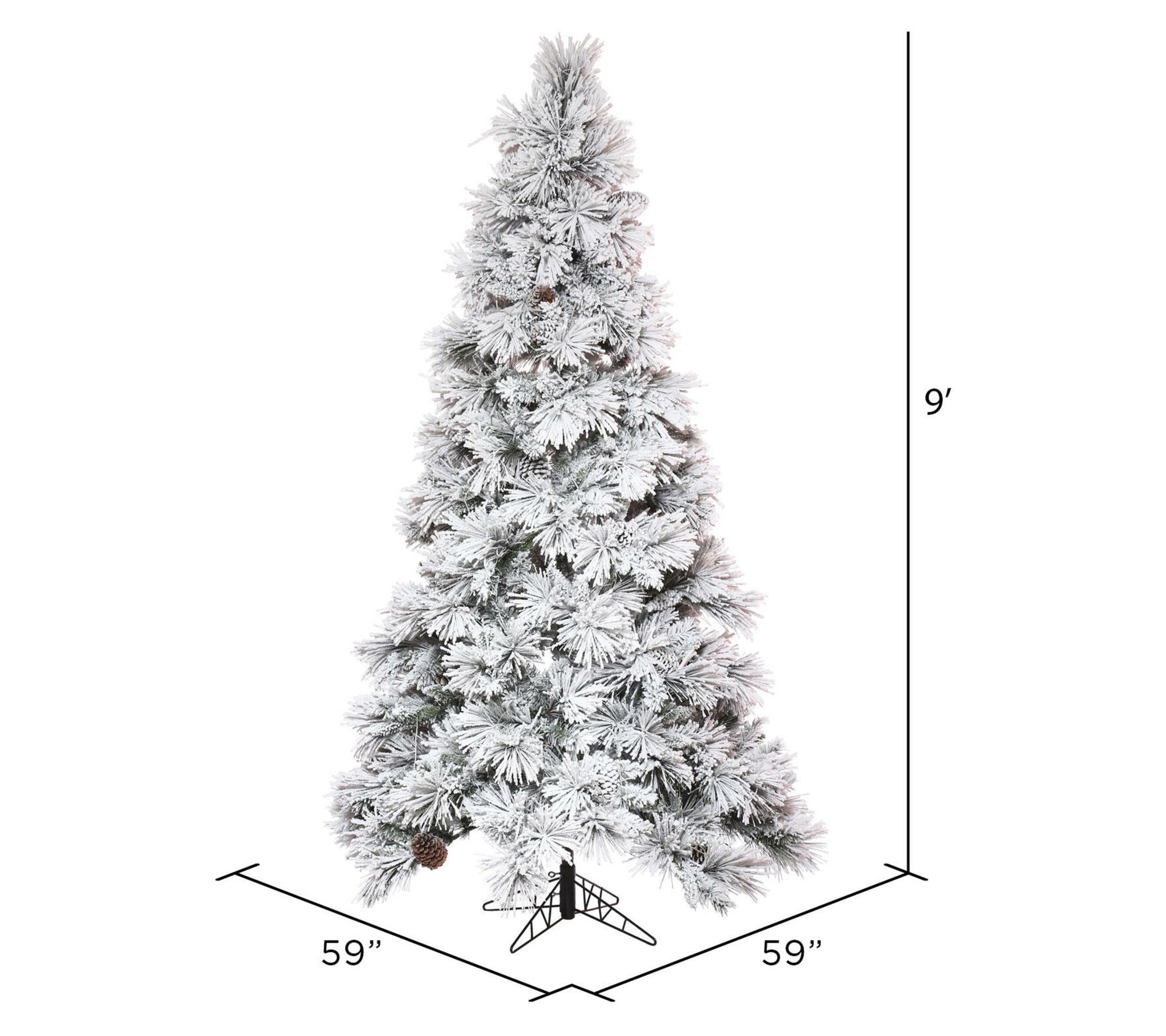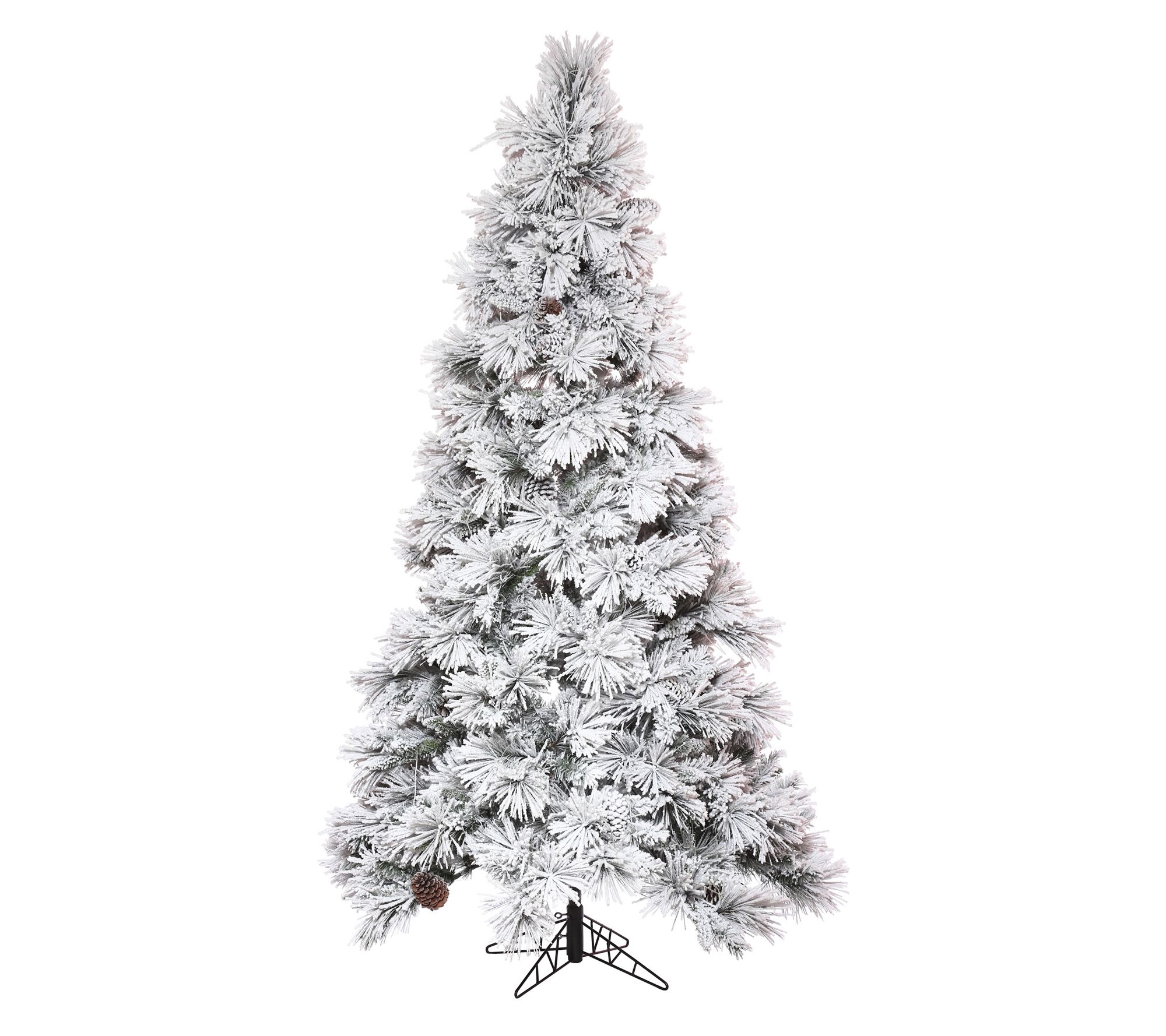 Snowy mornings feel just a bit more magical when this slim, flocked faux tree stands aglow with your favorite ornaments and memories. Graceful frosted branches dotted with pinecones create a festive statement in tight spaces or open living rooms alike. Create a dreamy winter scene and make decorating an annual tradition to cherish. From Vickerman.