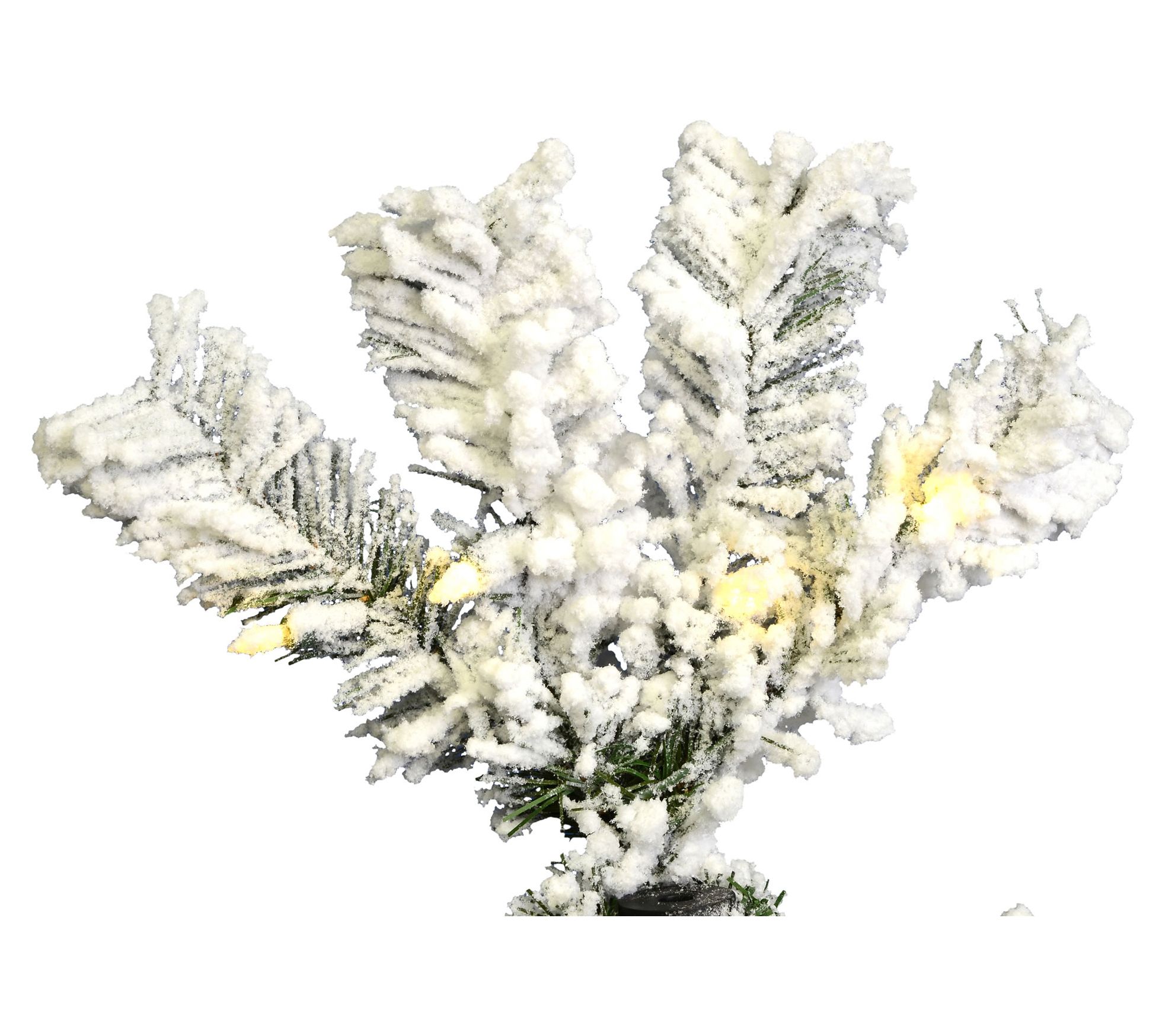 Transform your holiday space with a spectacular centerpiece that's dressed to impress. This slender beauty stands tall and elegantly showcases its snowy branches, all aglow with warm white LED lights. Imagine your gatherings surrounded by its gentle illumination while gifts sparkle underneath it. Designed to fit even the coziest corners, this festive addition brings effortless holiday spirit into your home. From Vickerman.