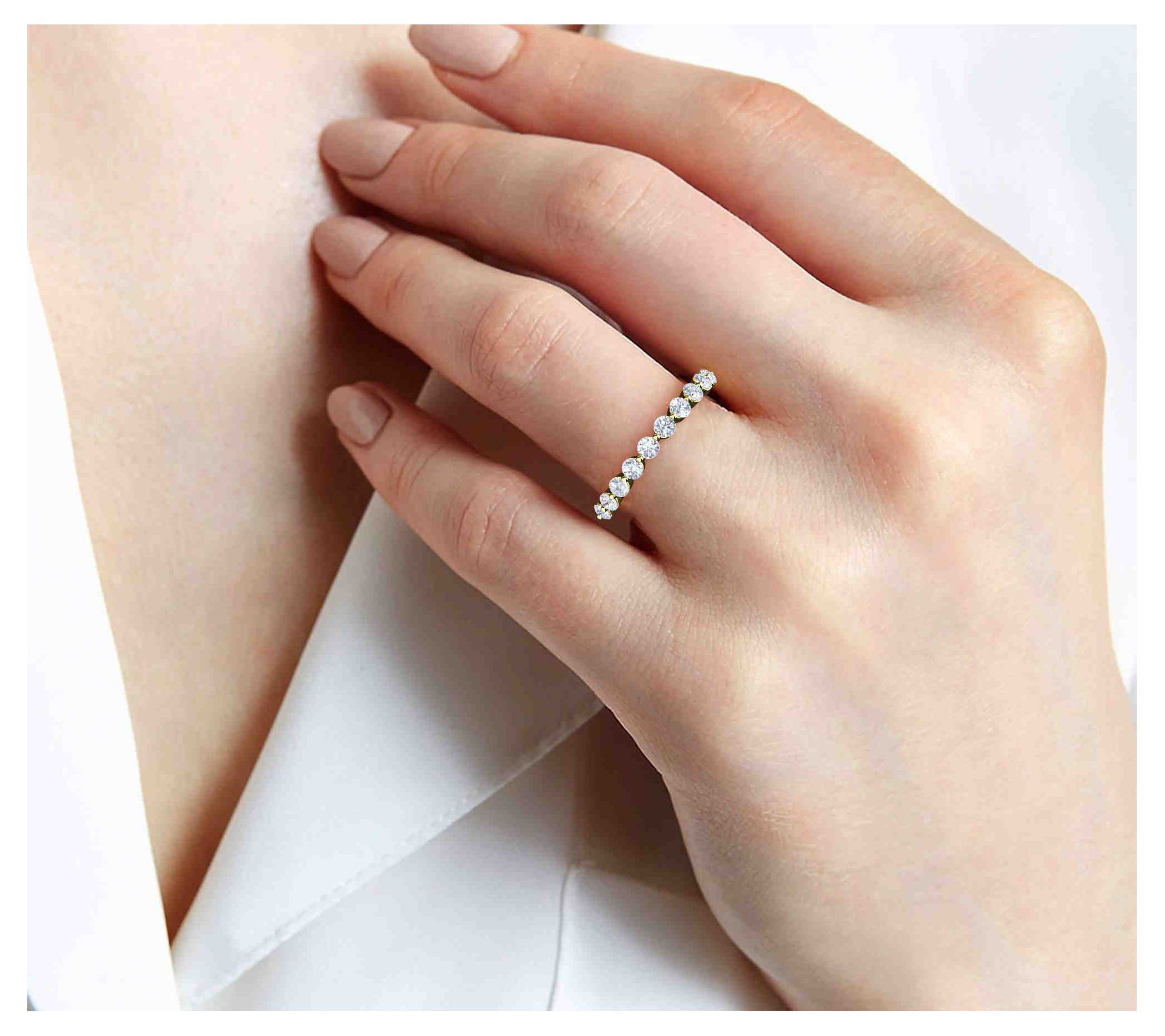 A mesmerizing masterpiece of sophistication and allure, this exquisite band ring exudes timeless elegance with 11 radiant round-cut lab-grown diamonds. From Vida Lab Diamonds.