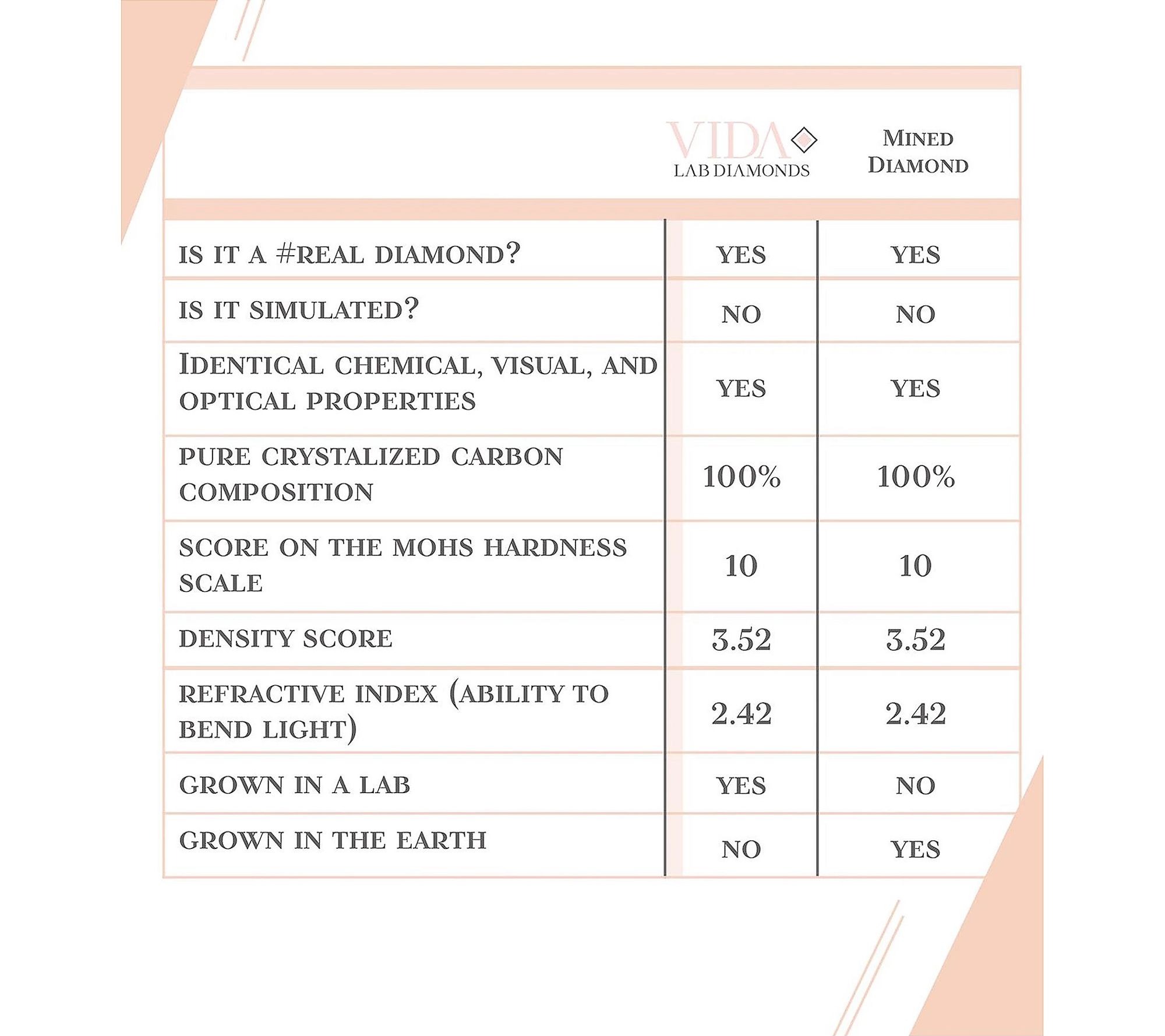 Lab-grown diamonds meet standard GIA requirements: Very Slightly Included clarity and Near Colorless color