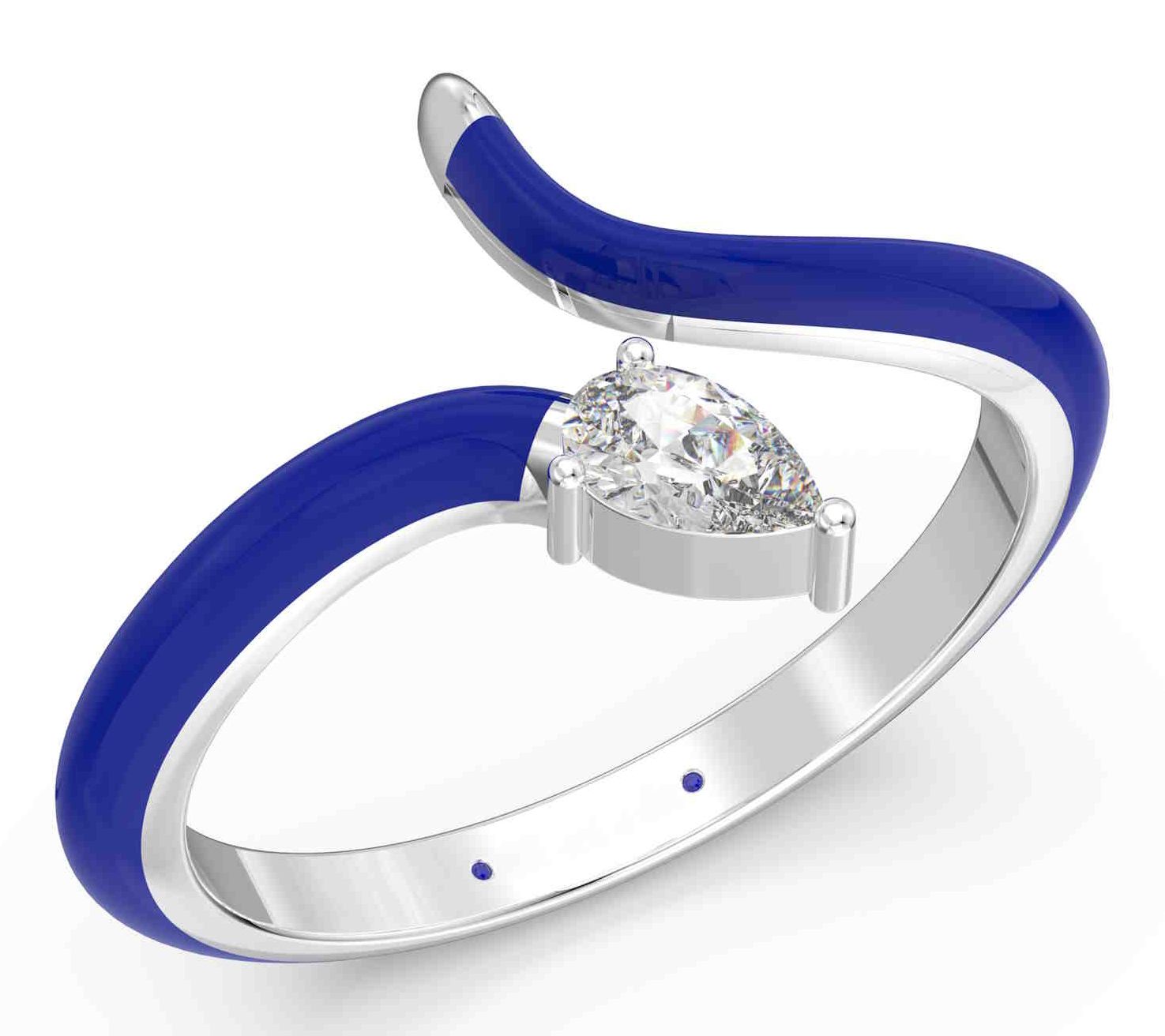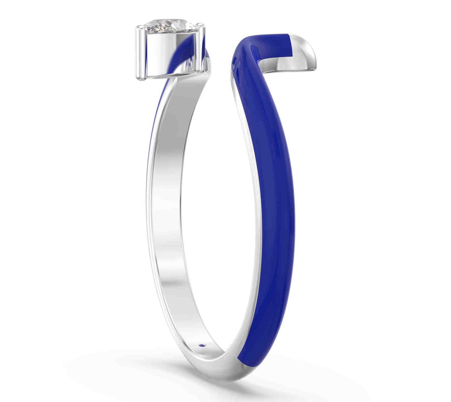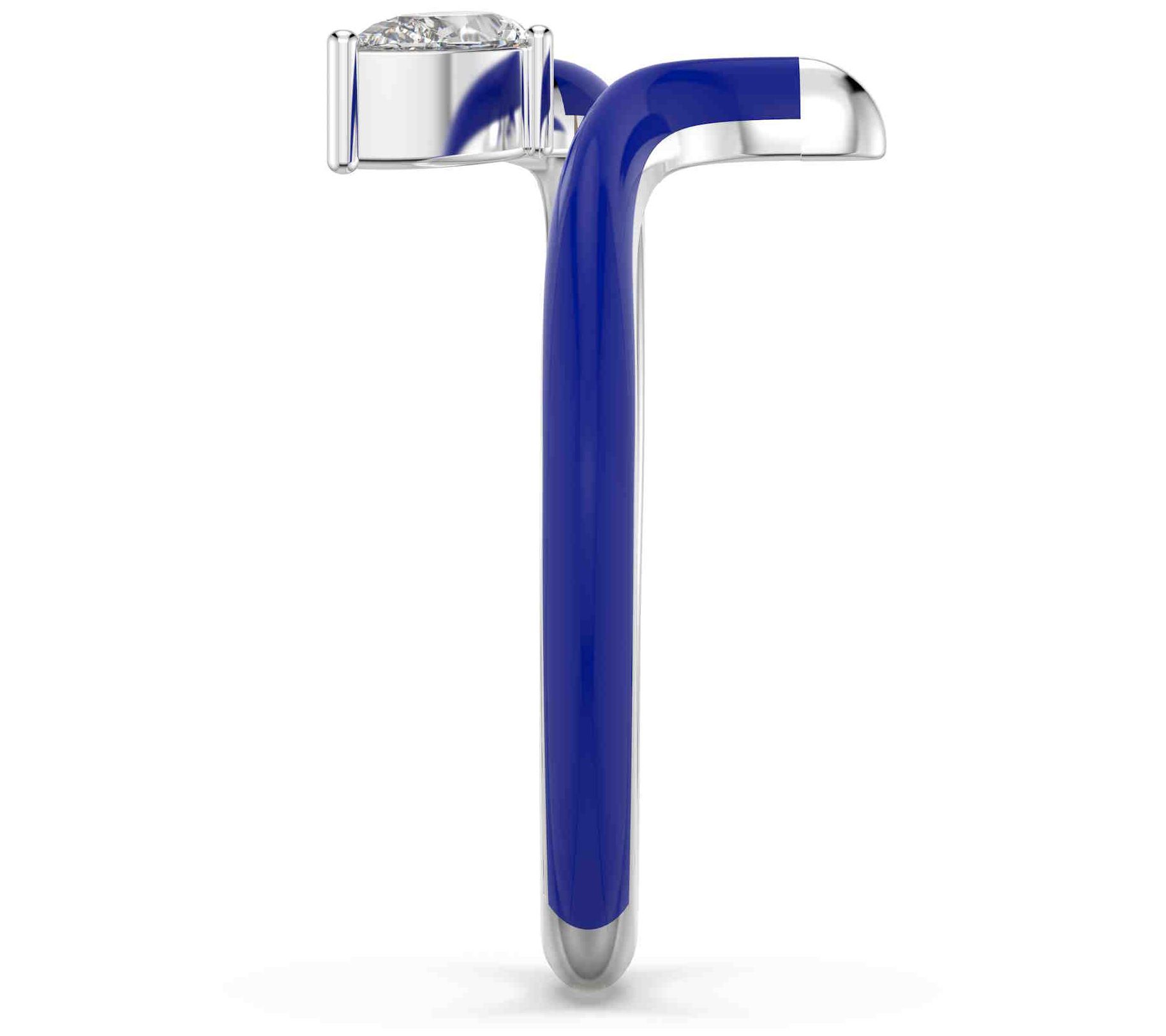 Serpentine wrap design; pear-shaped, prong-set, lab-grown diamond; royal blue ceramic finish