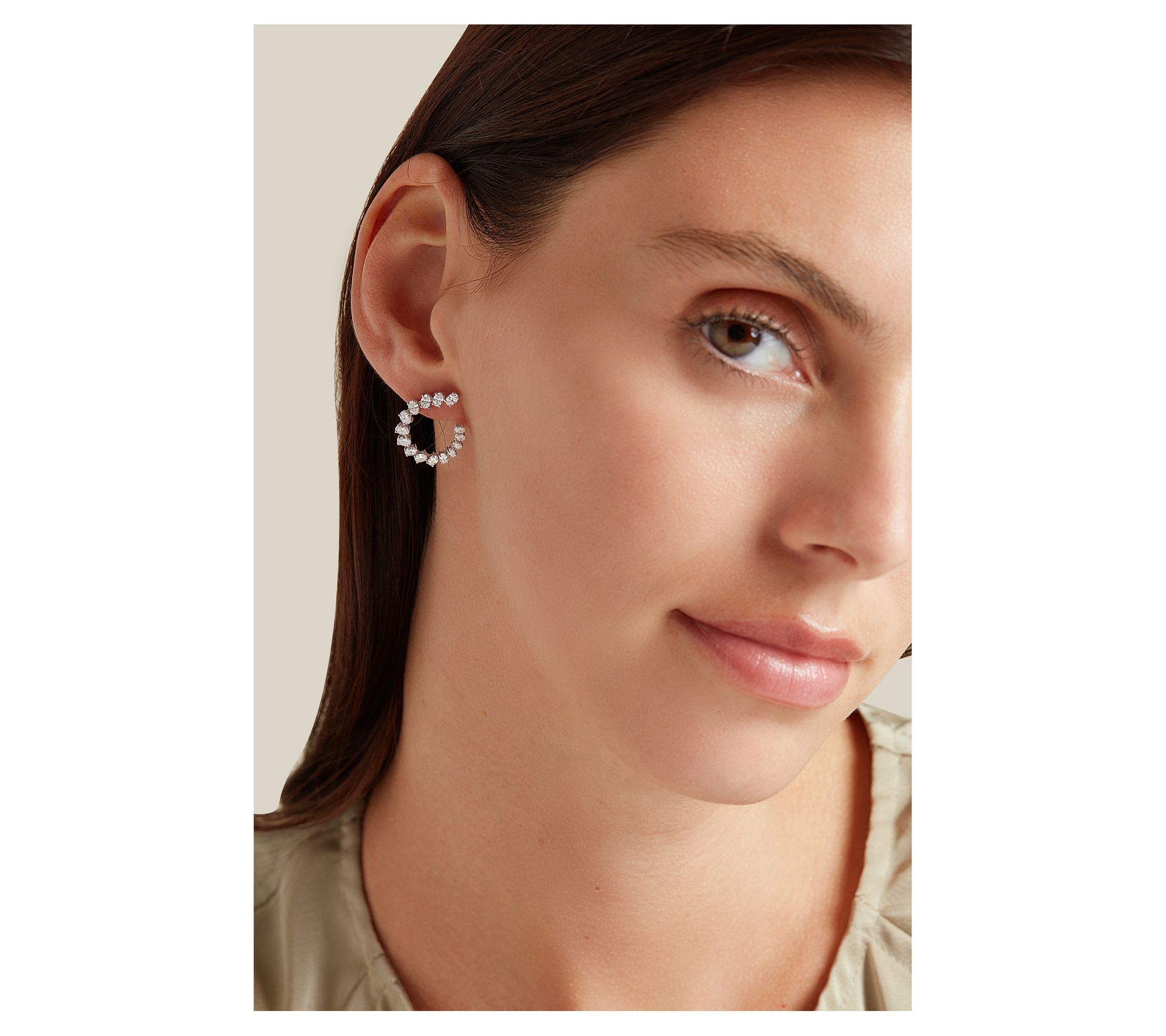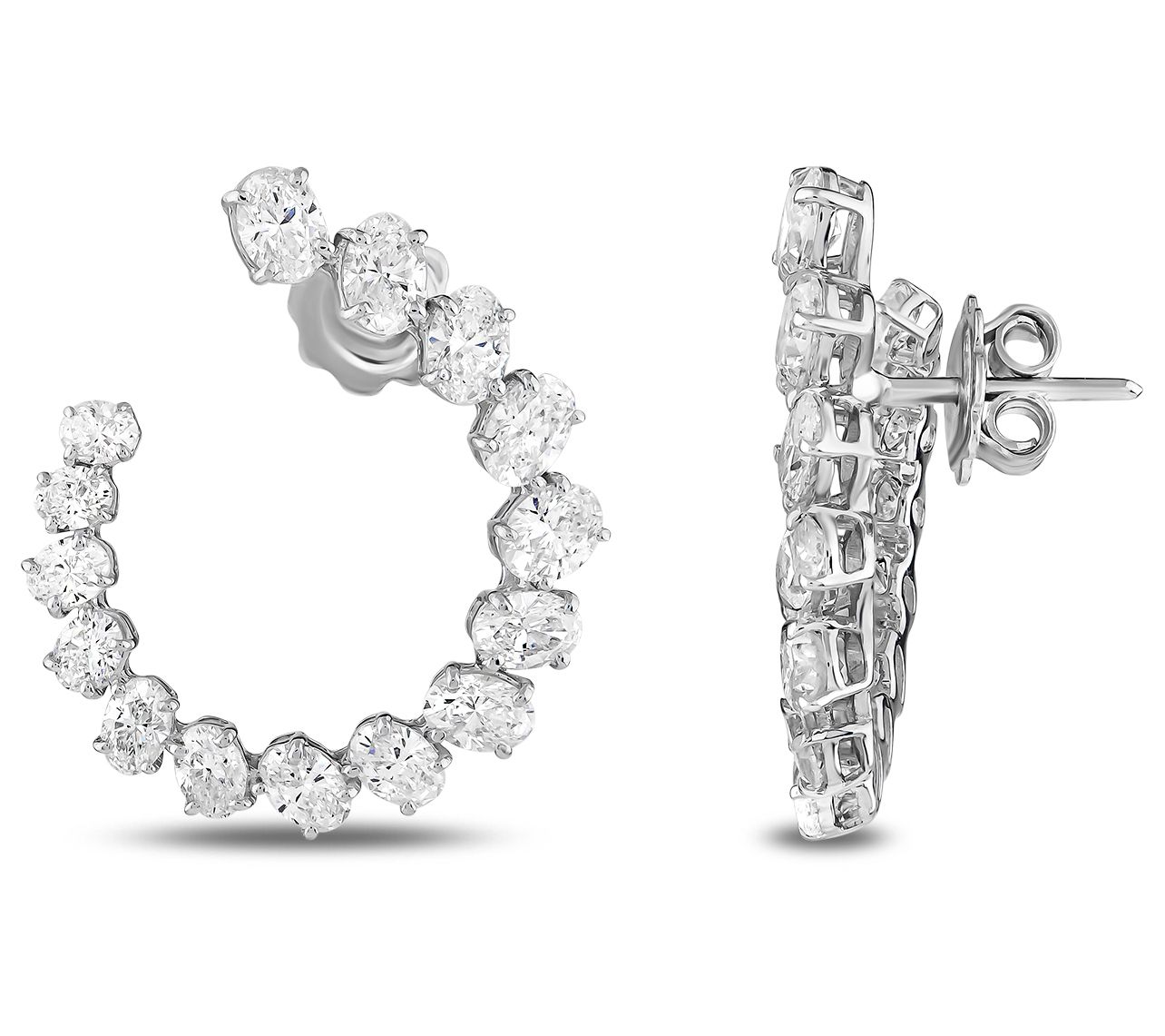 Glamour awaits when you slip on these eye-catching hoops that showcase an arrangement of oval-cut lab-grown diamonds at the end. From Vida Lab Diamonds.
