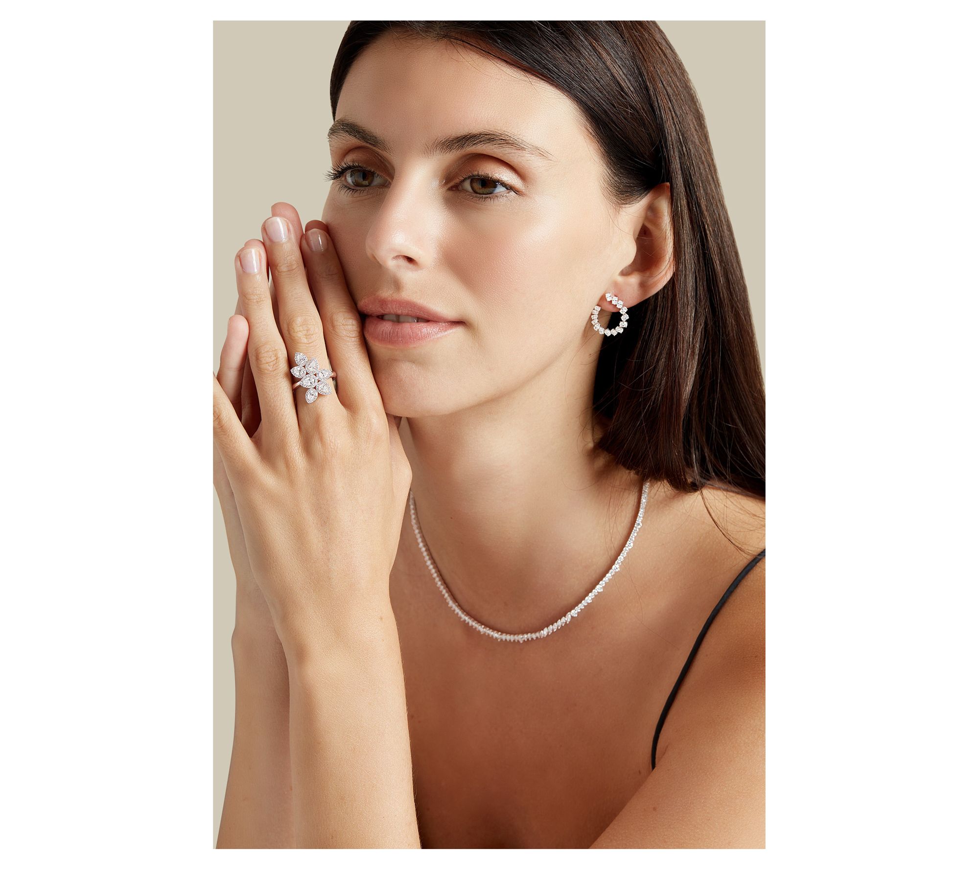 • Graduated oval-cut prong-set lab-grown diamonds