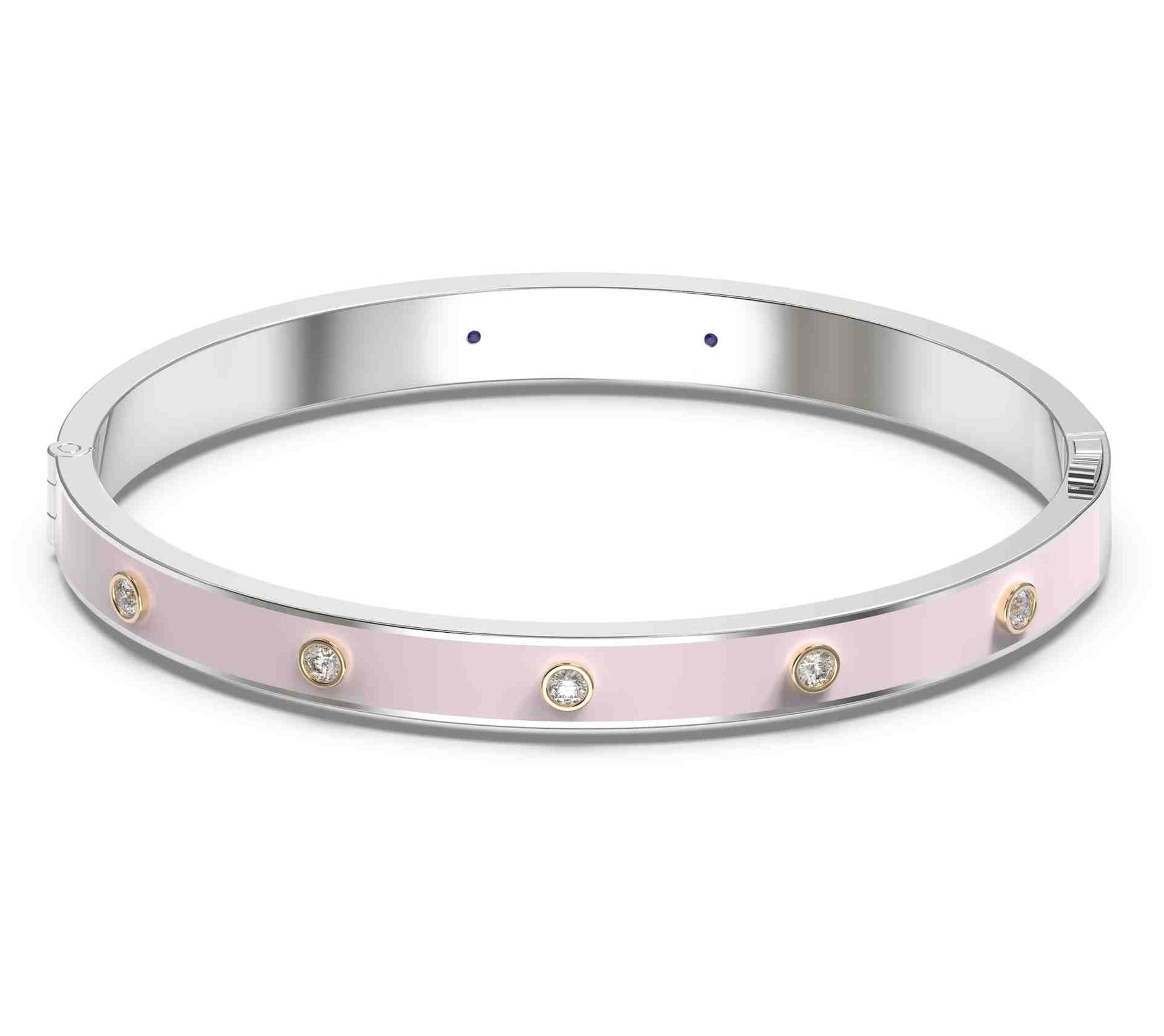 Pretty in pink! This feel-good lab-grown diamond bangle embraces the color trend with a pink mist ceramic finish. From Vida Lab Diamonds.