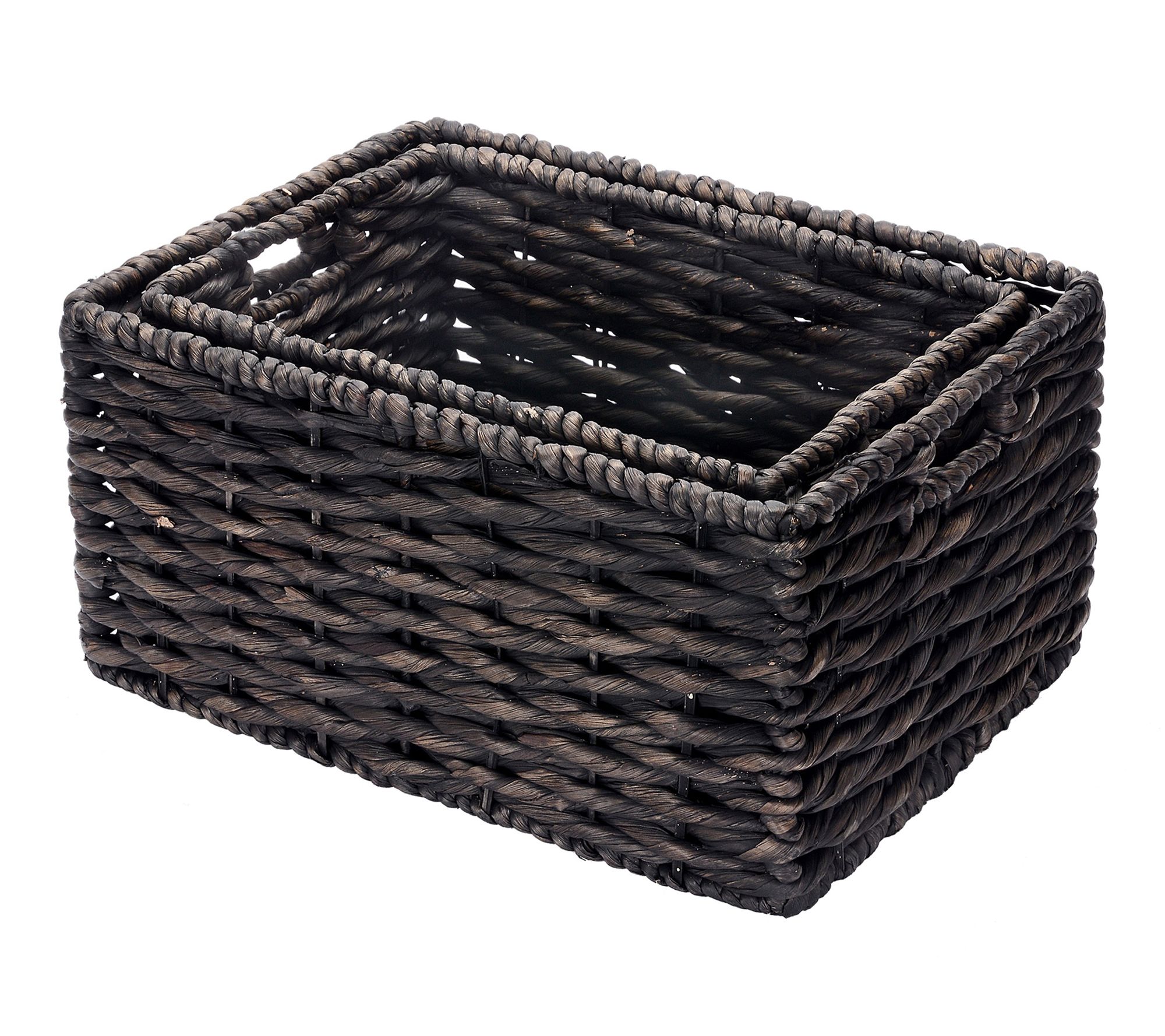 Clear the clutter and bring stylish organization into any space with this set of Villacera Rectangle Twisted Wicker Baskets. Designed to withstand daily use, their tight weave and integrated handles make storing laundry, toys, or office essentials a breeze -- plus, you can nest the baskets to save space when not in use. From Villacera.
