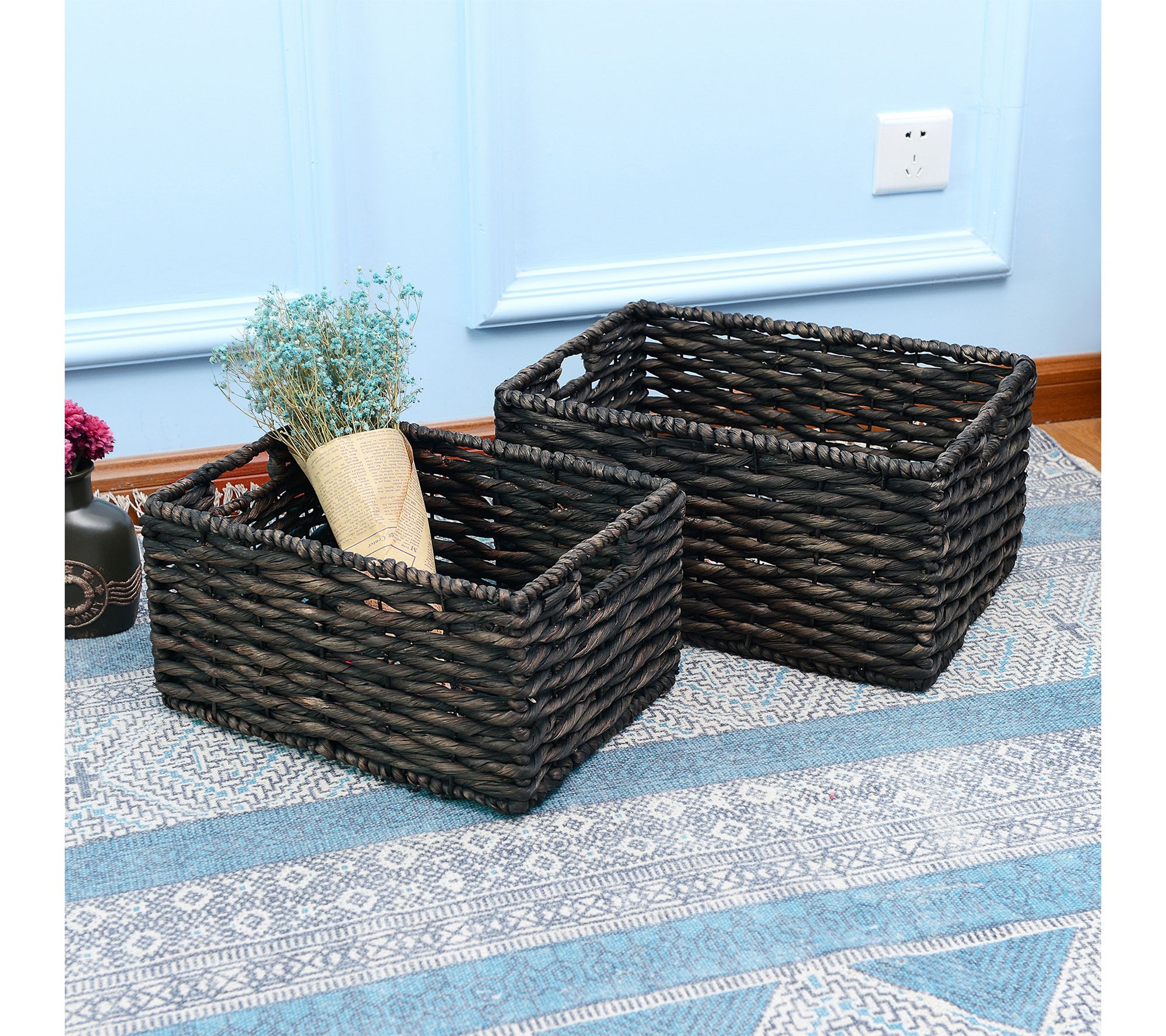 • Includes two woven baskets