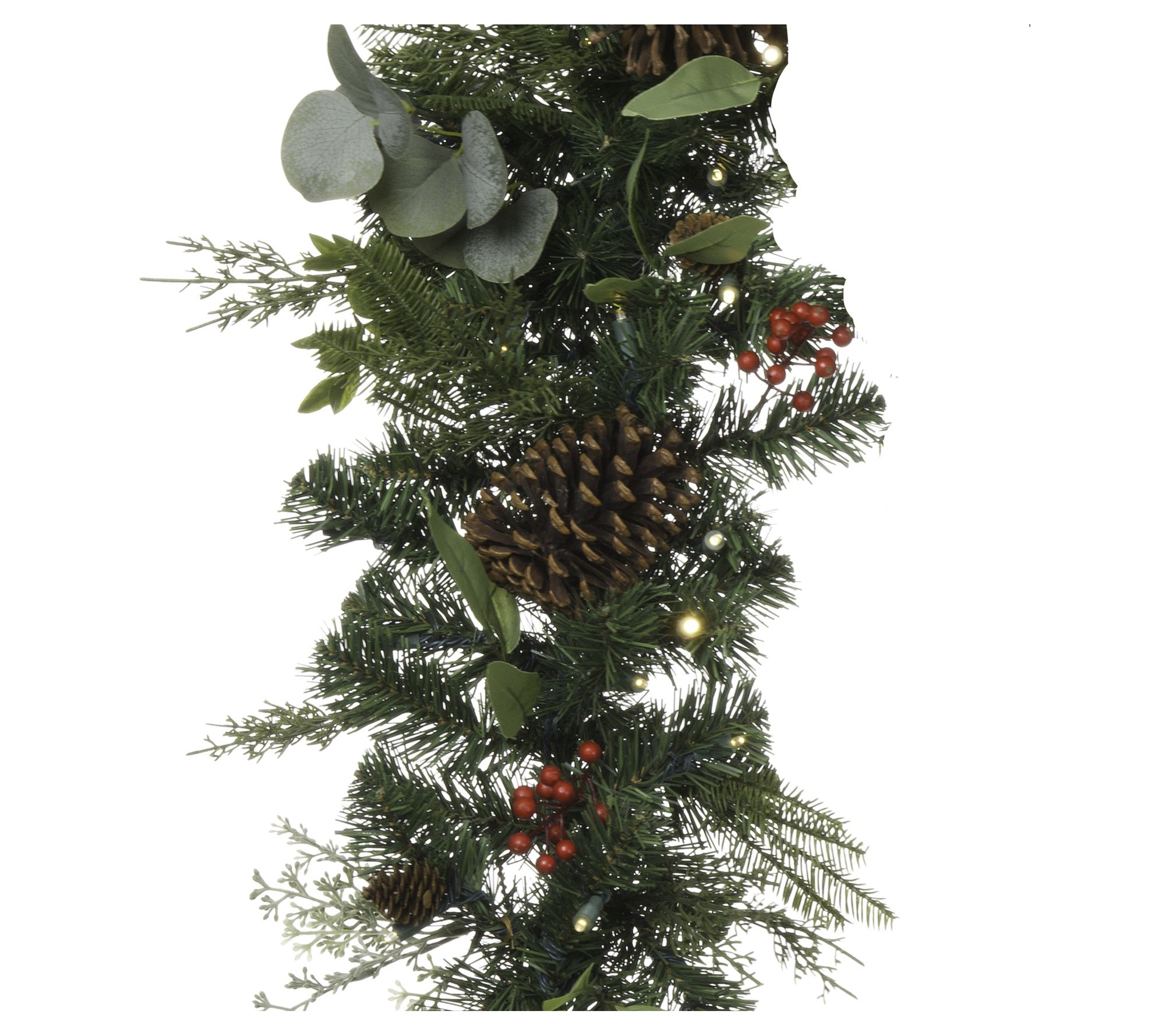 Bring a touch of woodland charm to your mantel or holiday display with this beautiful faux garland that features a mix of evergreens accented by pinecones, plump berries, and a cozy LED glow. From Village Lighting.