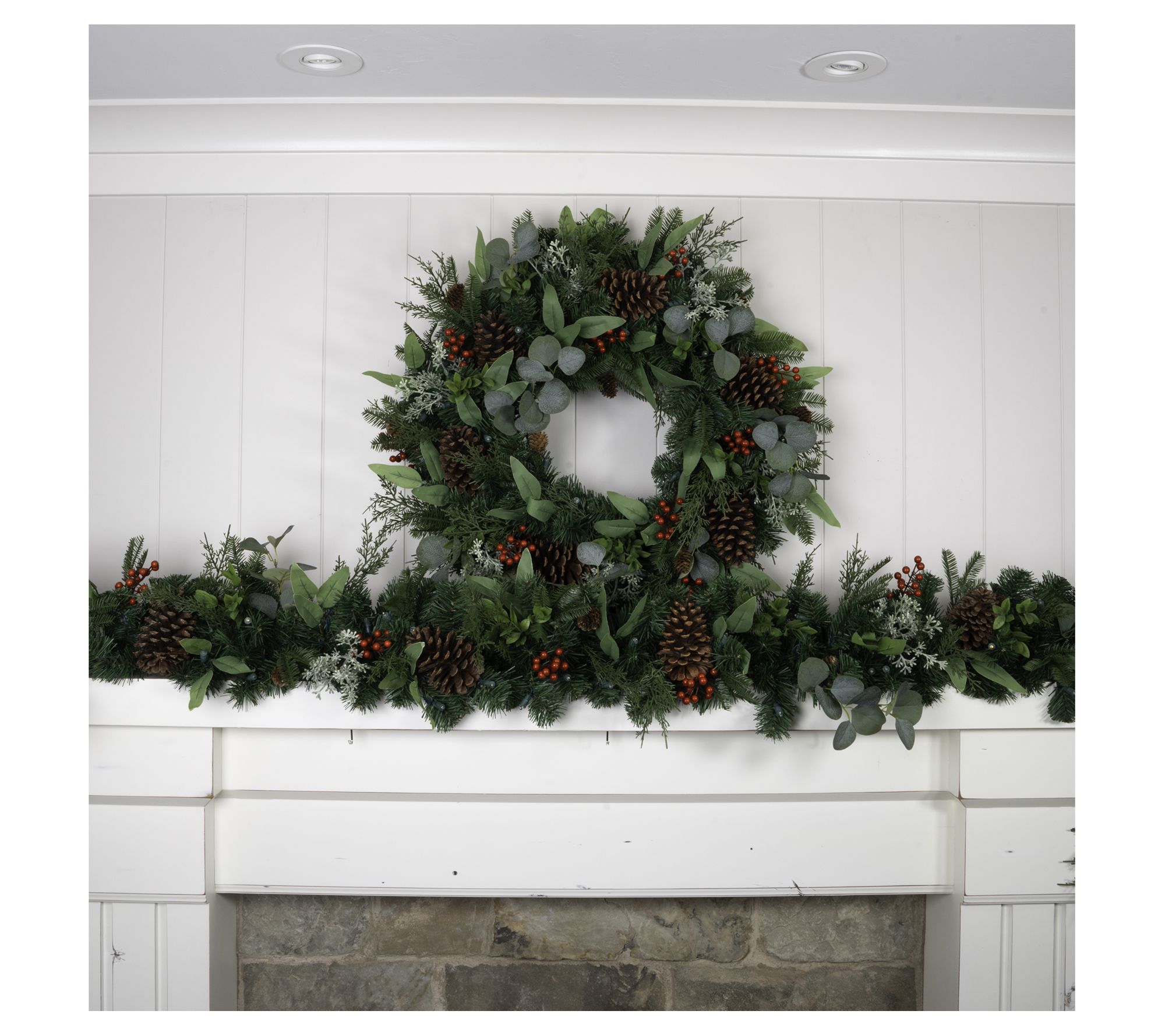 • Includes prelit faux garland with remote control