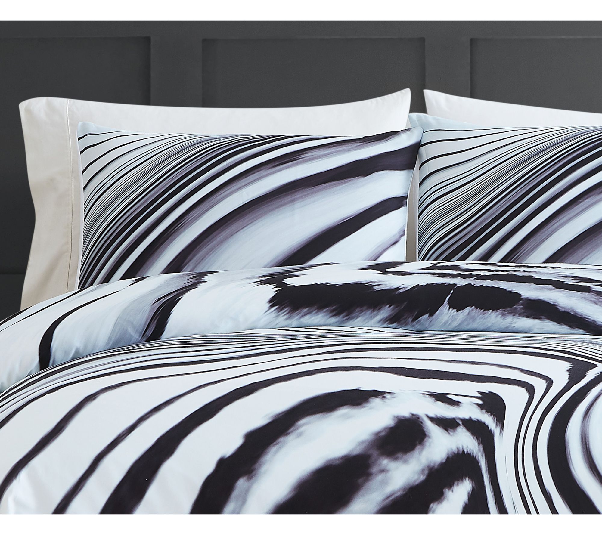 Bye-bye boring bedroom decor. This three-piece comforter set wakes up the room with a little wild style. From Vince Camuto.