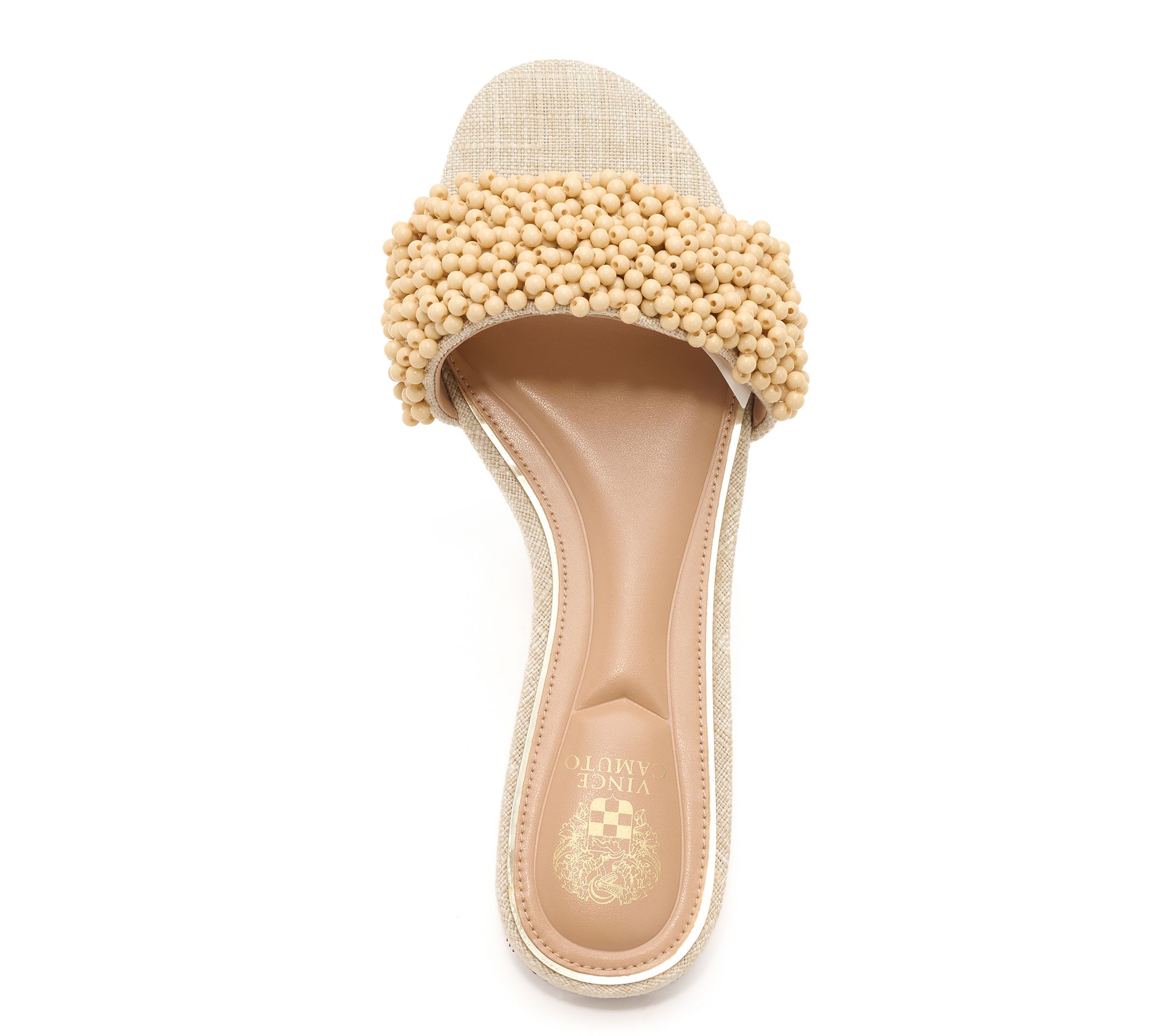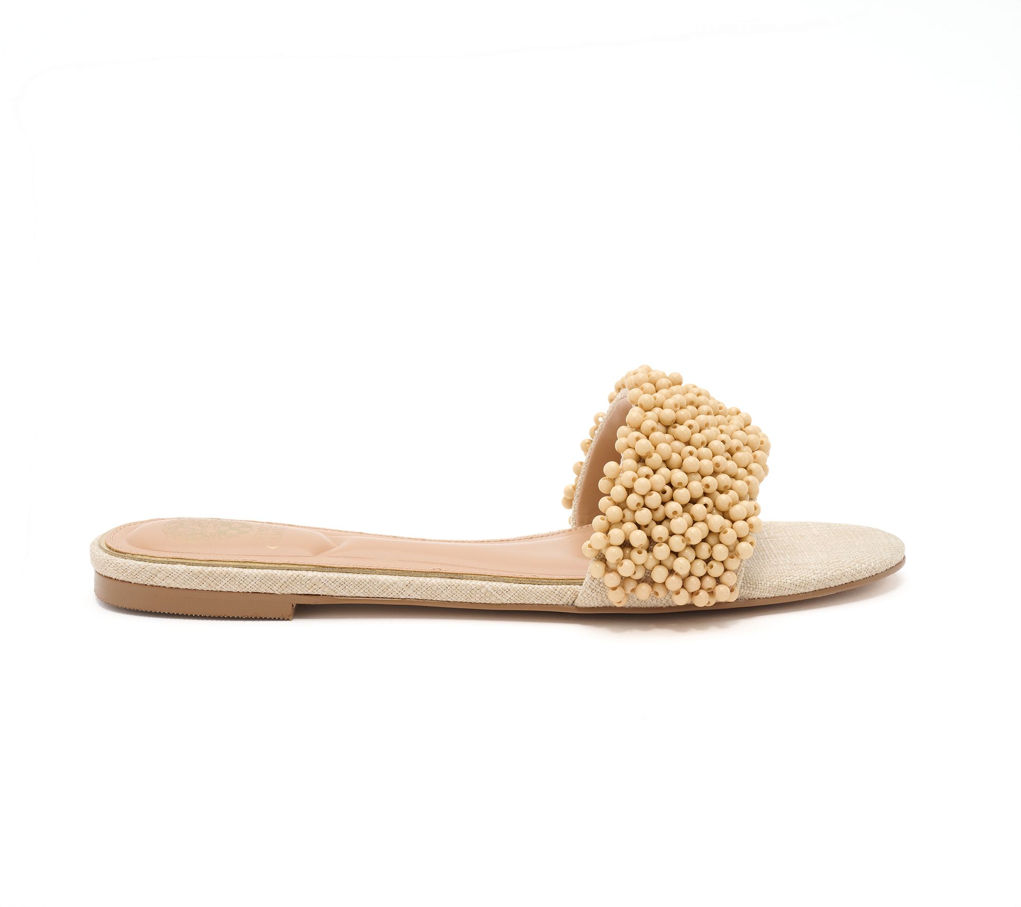 VC-Balea embellished slide sandals add a relaxed elevated style to your summer wardrobe. The beaded textile upper, available in a neutral color palette, features an open round toe and a " heel. This slip-on sandal is the perfect compliment to flirty summer maxis and flowy linen beach pants for an effortless chic vibe. Fit: True to size. COO: Imported.
