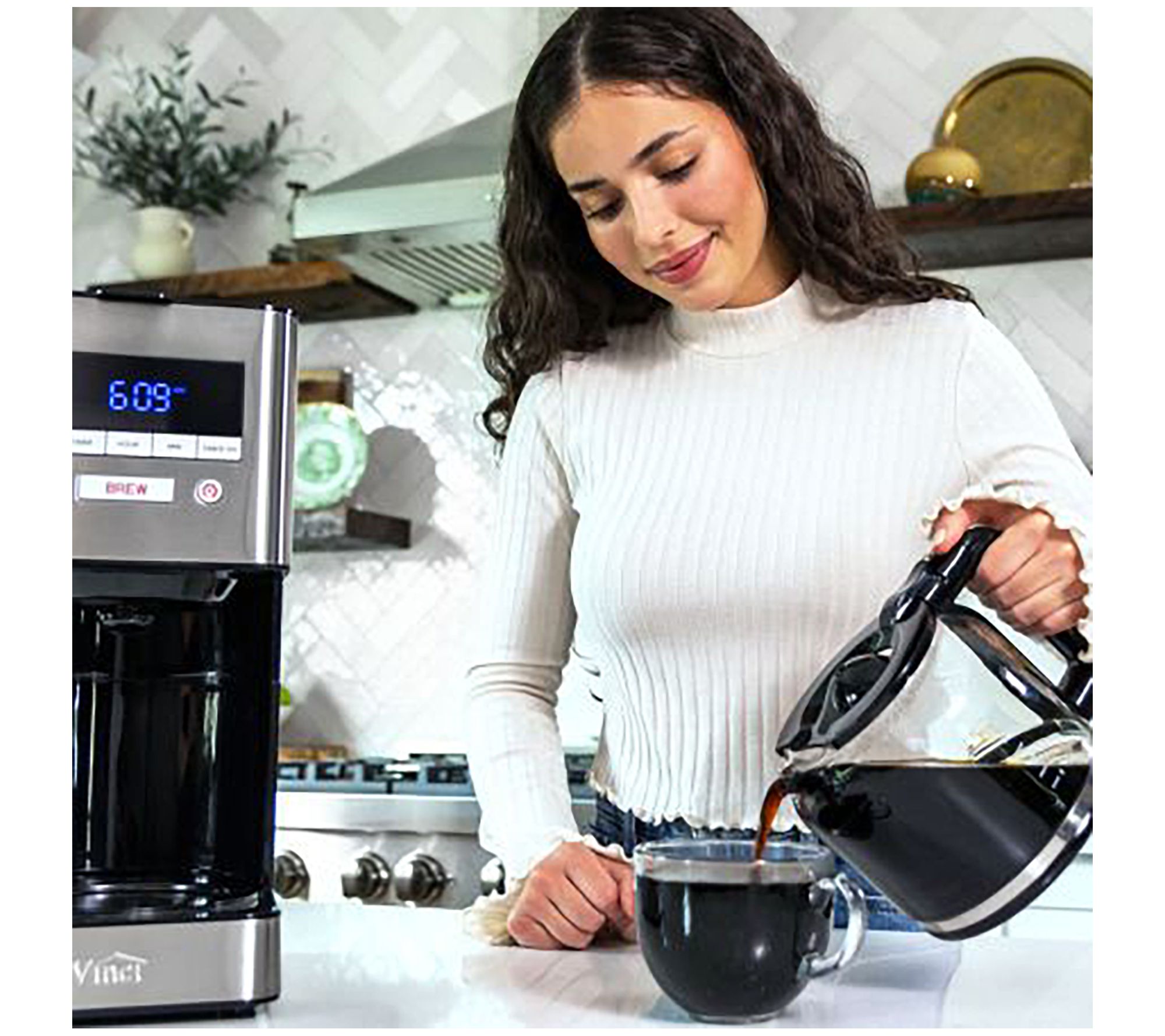 Enjoy a better-tasting coffee every morning with the Vinci Elite RDT coffee maker. Engineered to deliver the perfect brew, this innovative machine features a spinning spray head for superior water distribution, an ideal brewing temperature, and a special bloom function that enhances flavor and aroma. With a sleek and compact design, the Vinci Elite fits effortlessly under most kitchen cabinets, making it the ultimate choice for coffee enthusiasts. From Vinci Housewares.