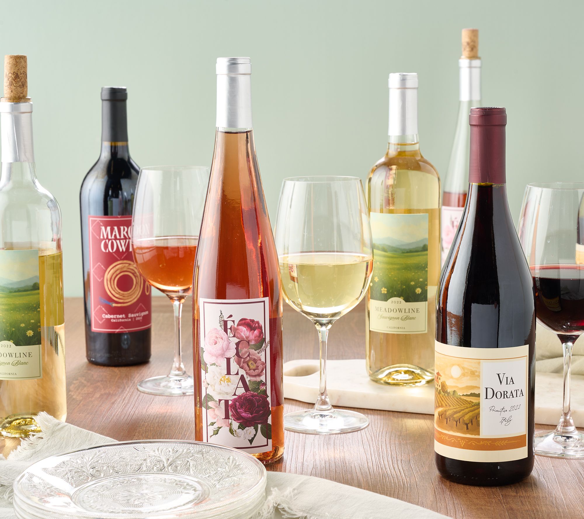 All White: six bottles each of 2022 Eclat Rose, CA and 2022 Meadowline Sauvignon Blanc, CA