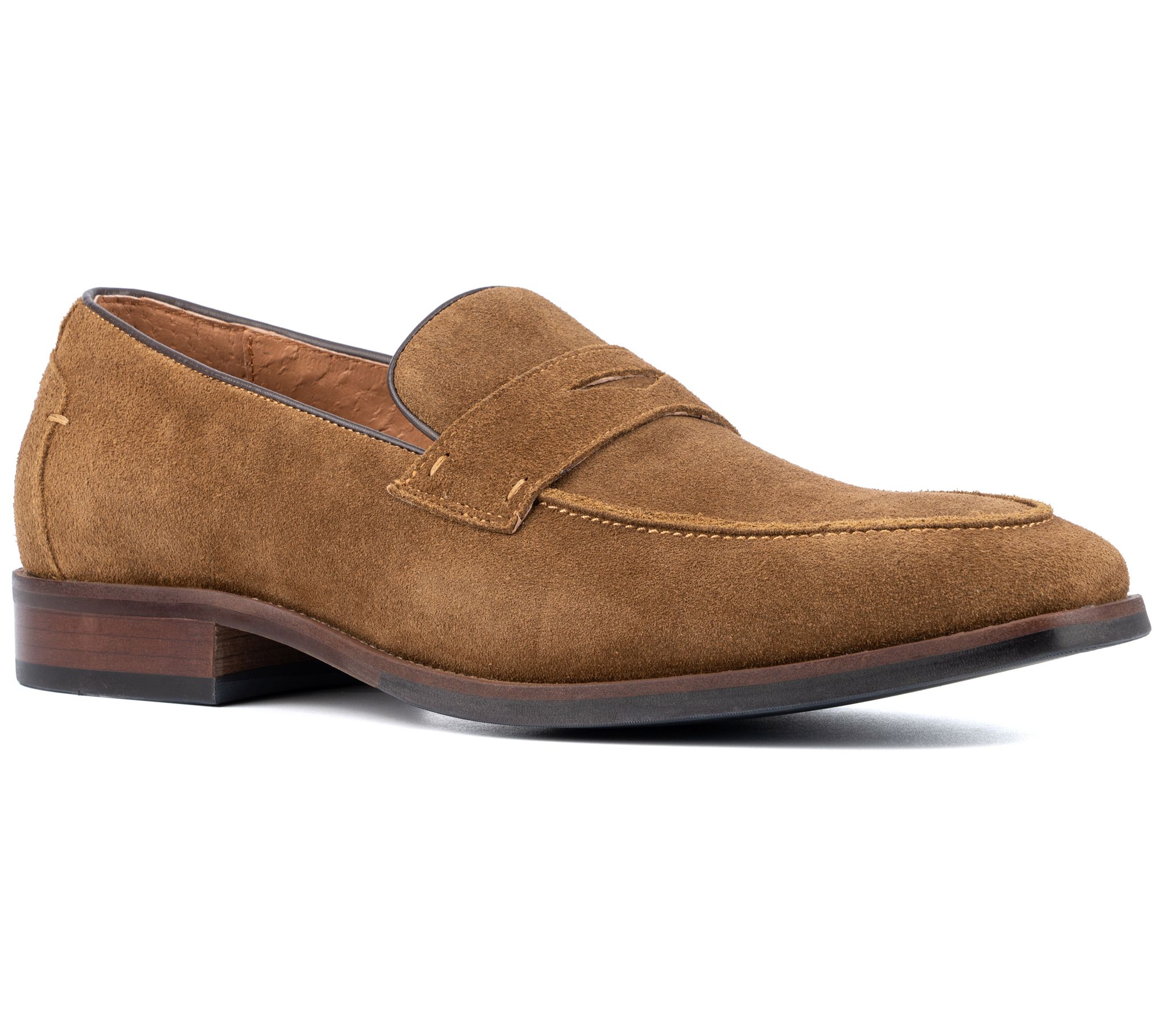Classic design for the modern man, the James loafer features an iconic penny-keeper strap, a stylish almond toe, and an insole that keeps feet comfortable all day. From Vintage Foundry Co.