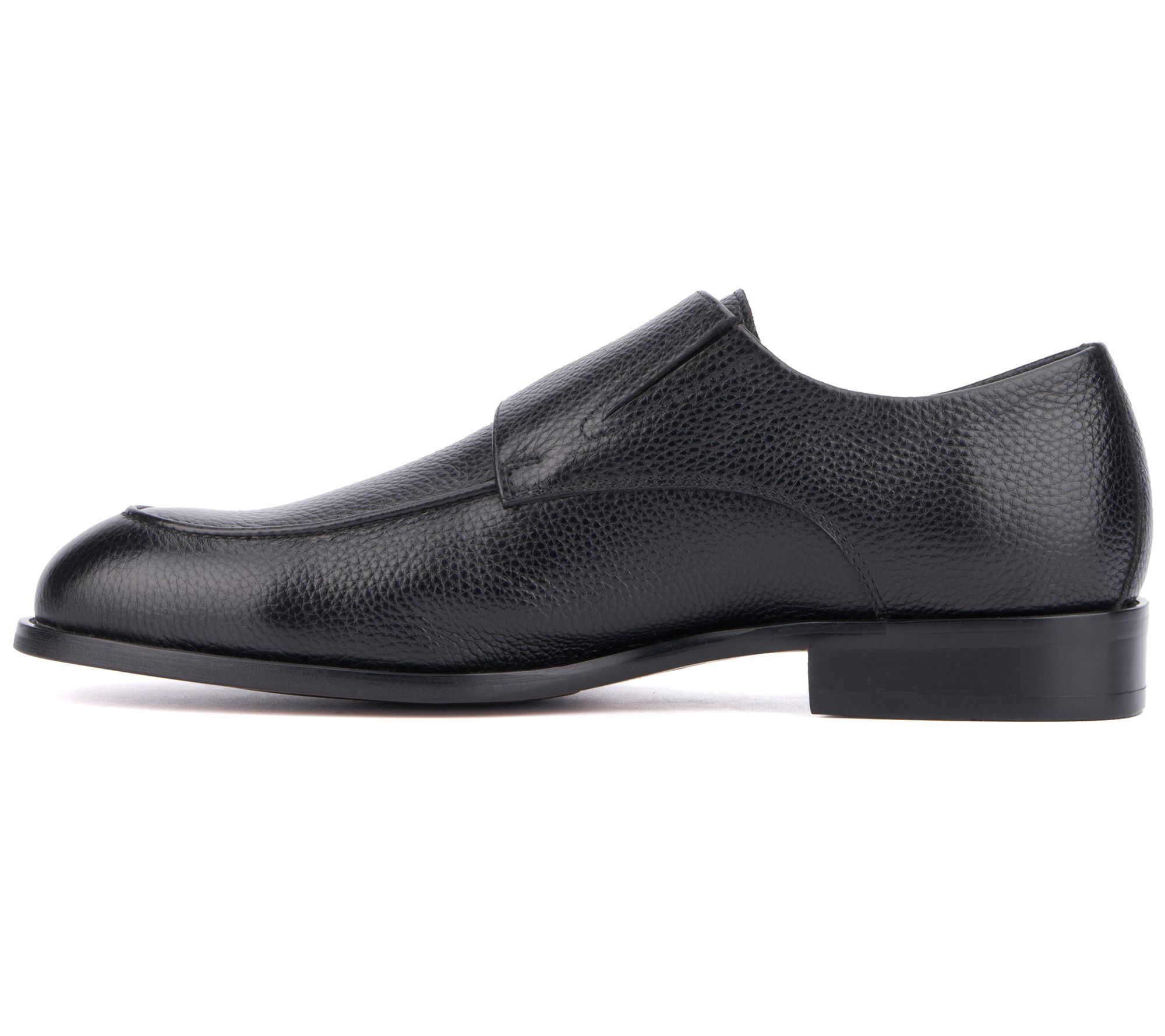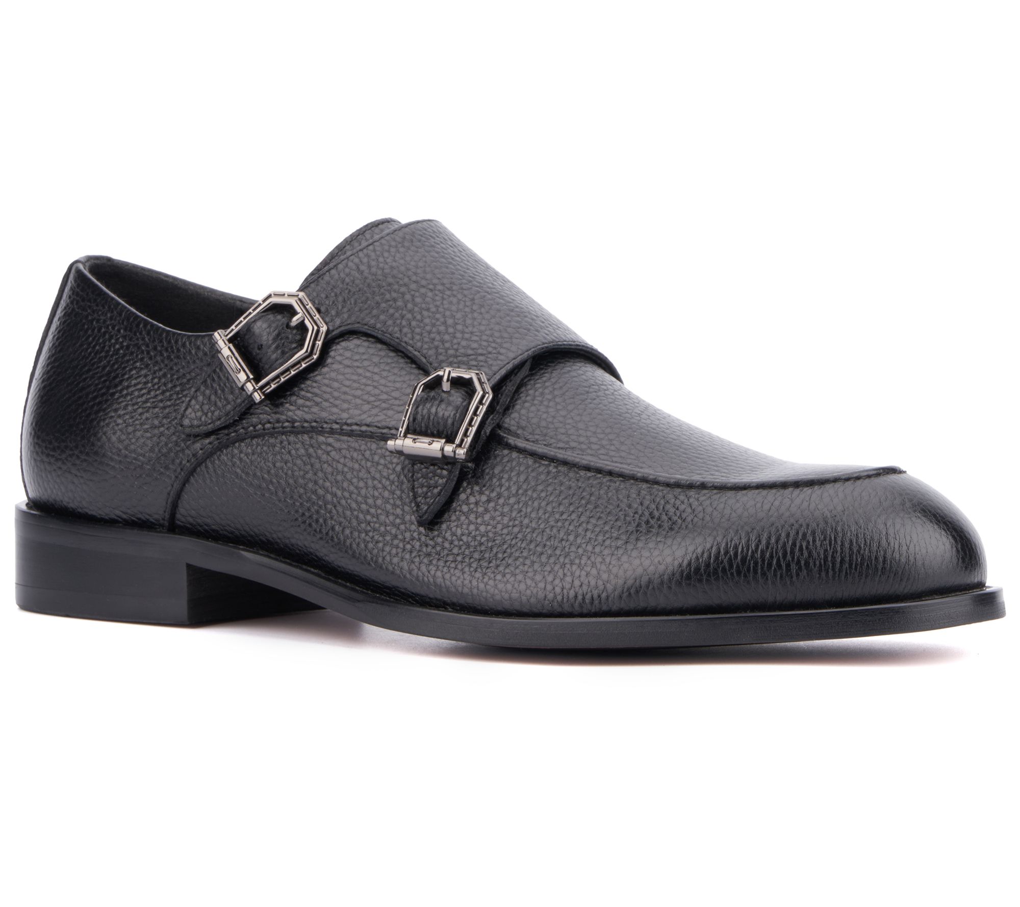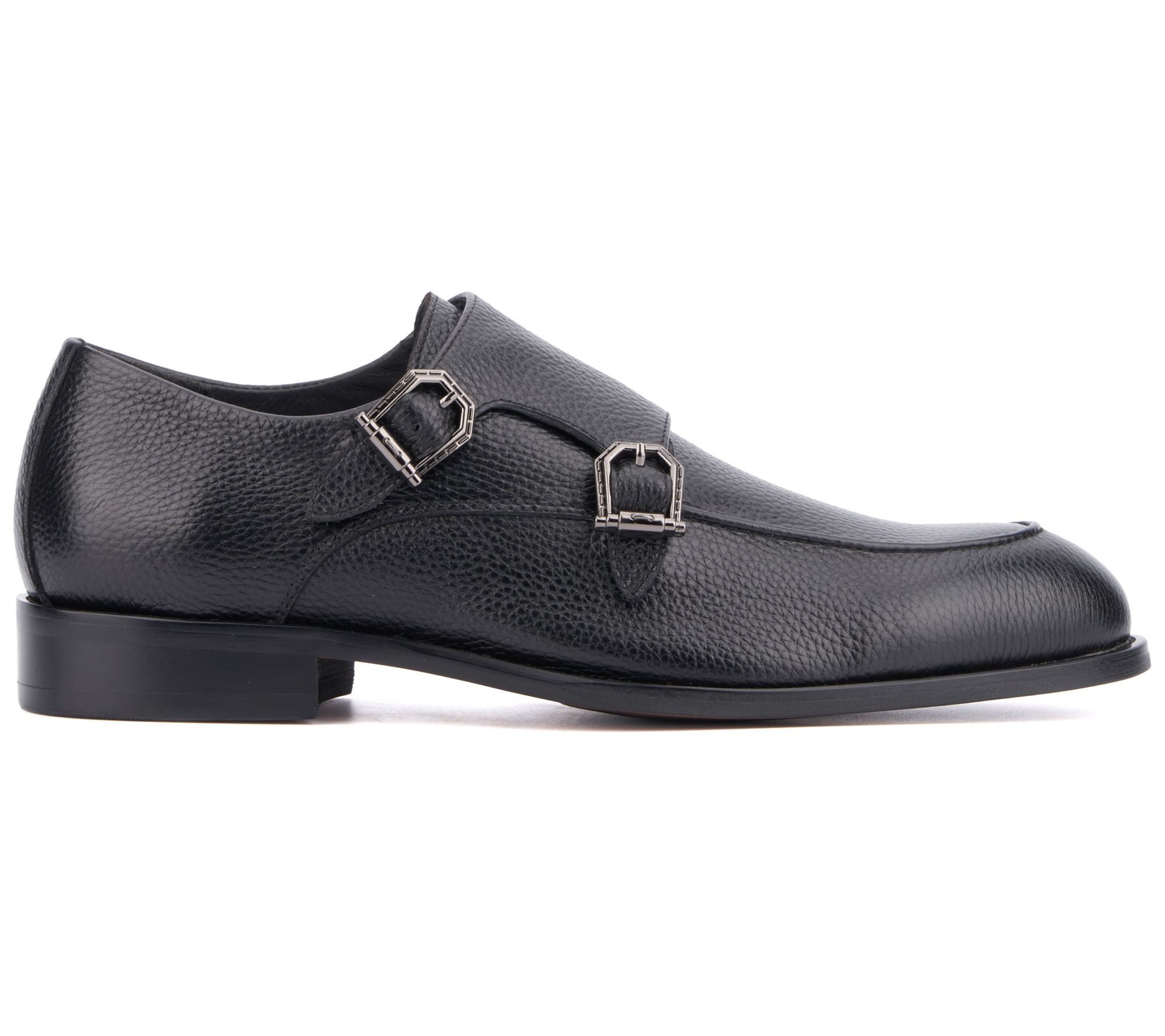 • Monk strap design with buckle closure, rounded toe