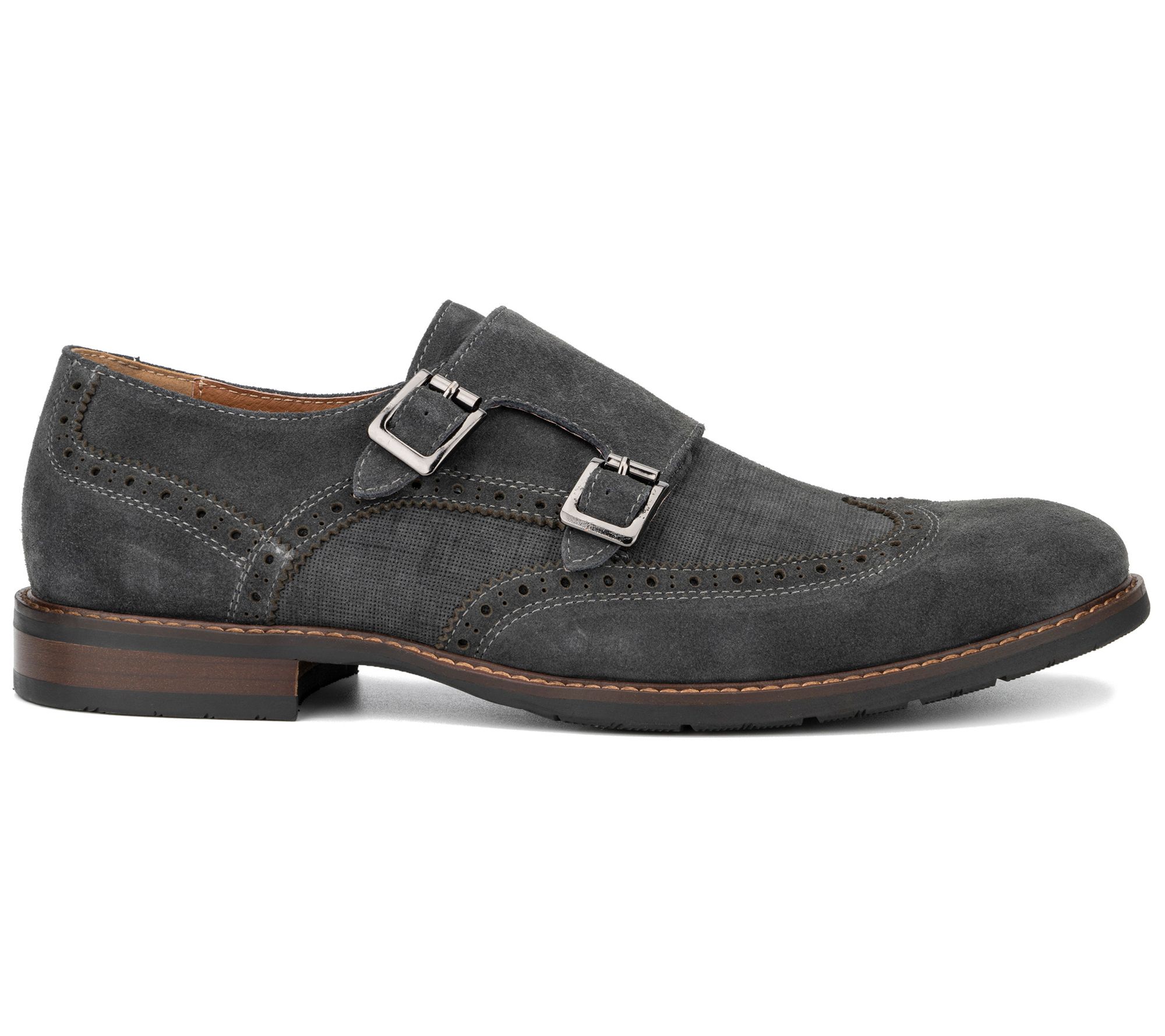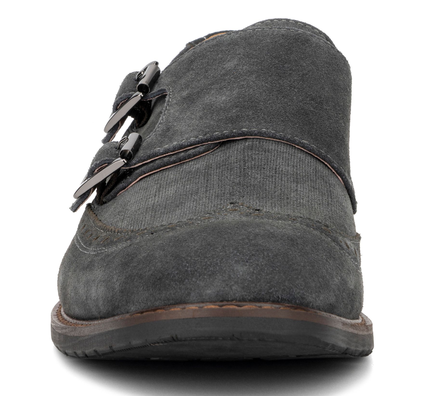 • Double monk strap closure, rounded toe