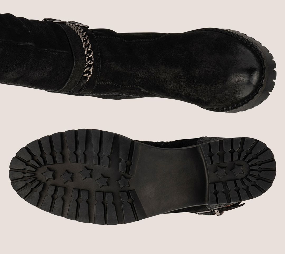 The Alice boot needs to be a new closet favorite! These stylish tall-shaft boots feature a premium leather upper that goes up over the knees. The pull-on construction and side zipper make on-and-off easy. From Vintage Foundry Co.