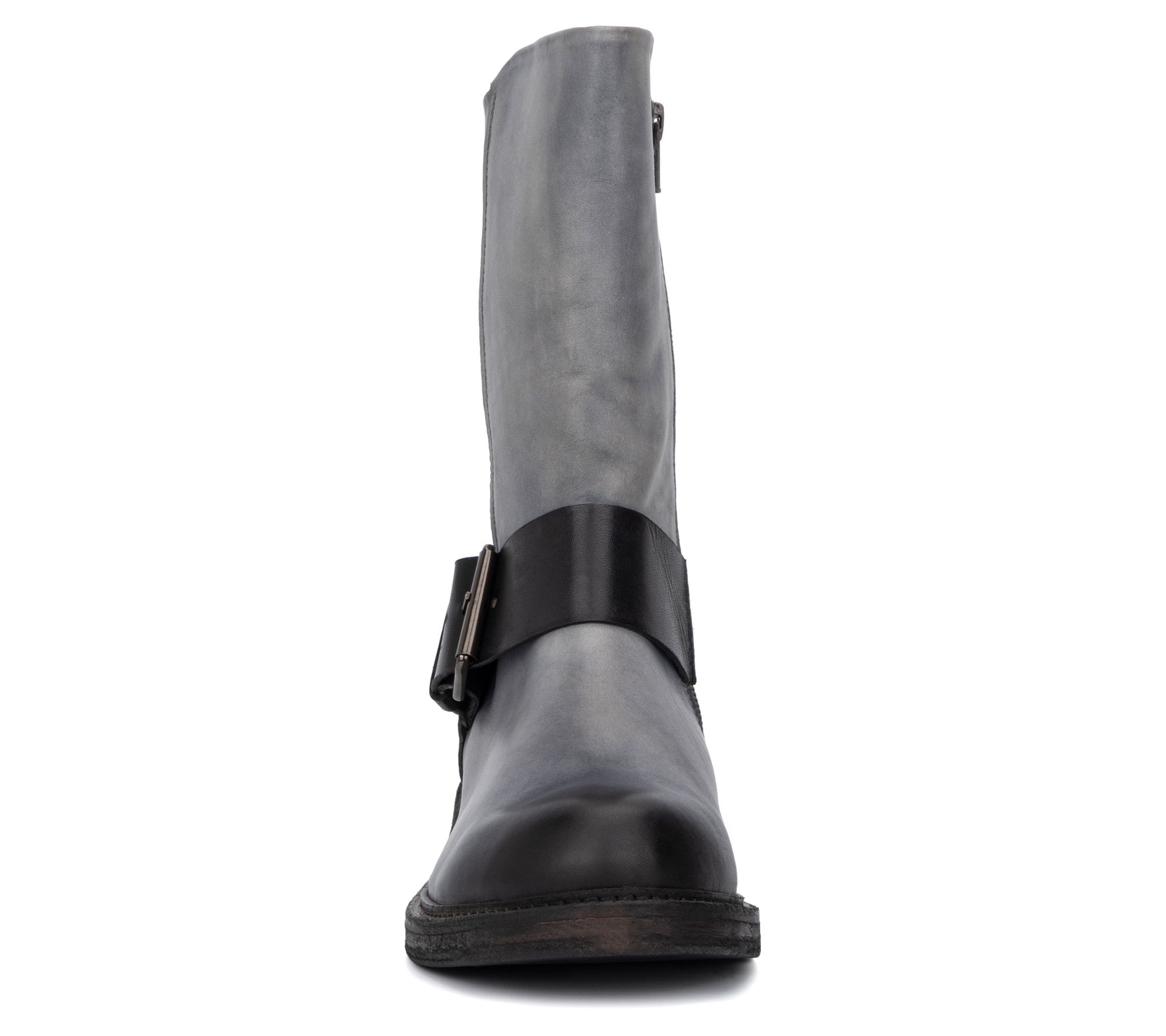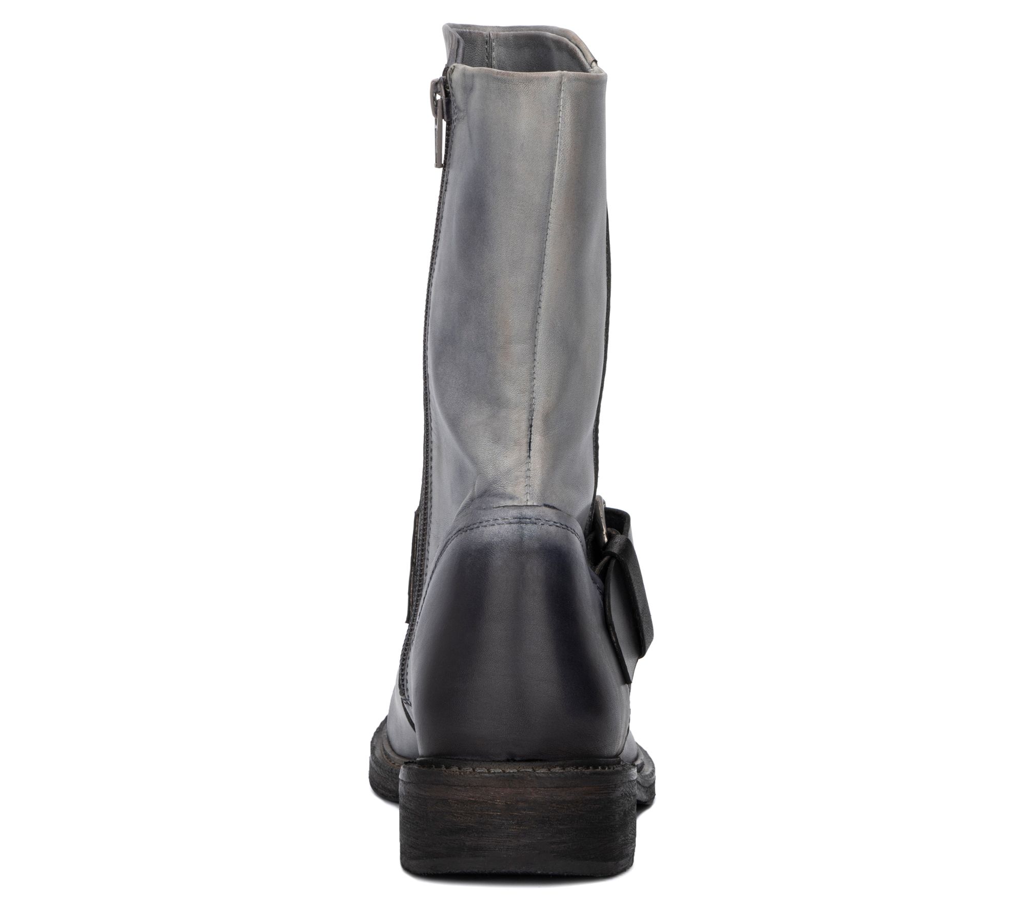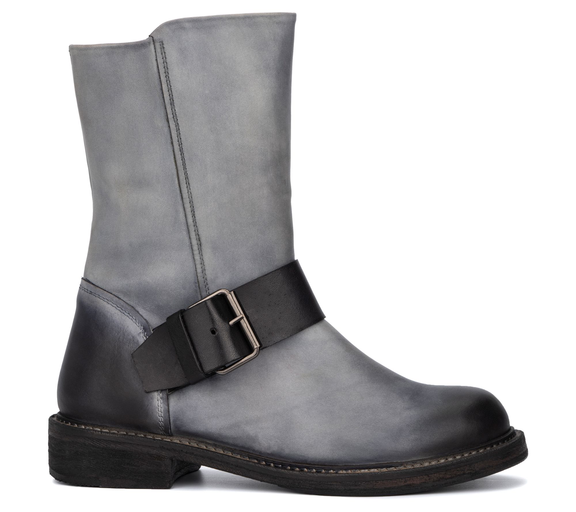 Bring a glamorous kick to your ensemble with these luxe leather boots showcasing a convenient side-zip design, buckle accents, and sturdy rubber soles. From Vintage Foundry Co.