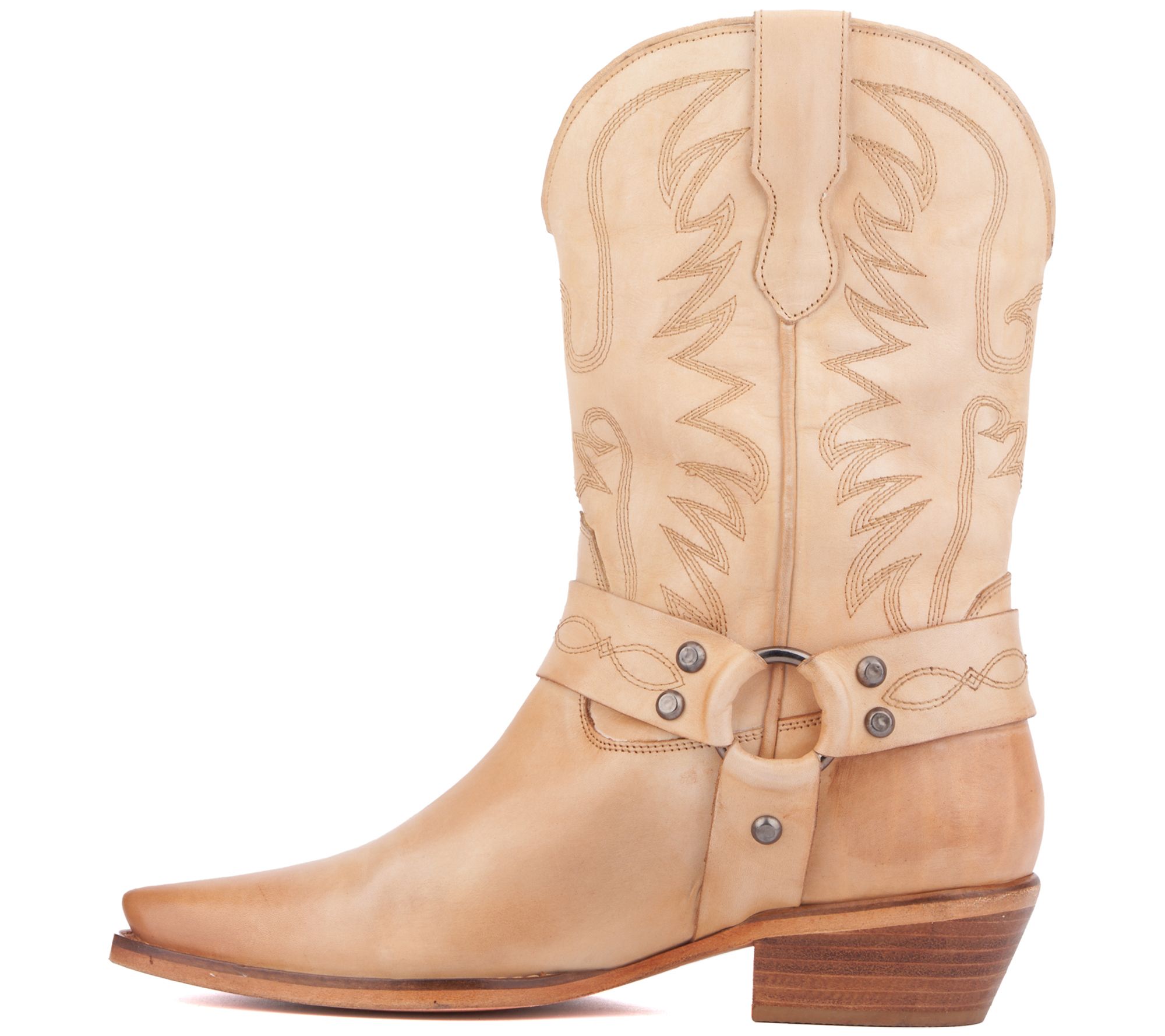 Elevate your wardrobe with the timeless elegance of the Vintage Foundry Co. Women's Aria Western Boot. This classic cowboy boot, featuring a metal-circle ring strap and intricate front stitching, offers a perfect blend of traditional western flair and modern style, making it an essential piece for any fashion-forward ensemble. From Vintage Foundry Co.