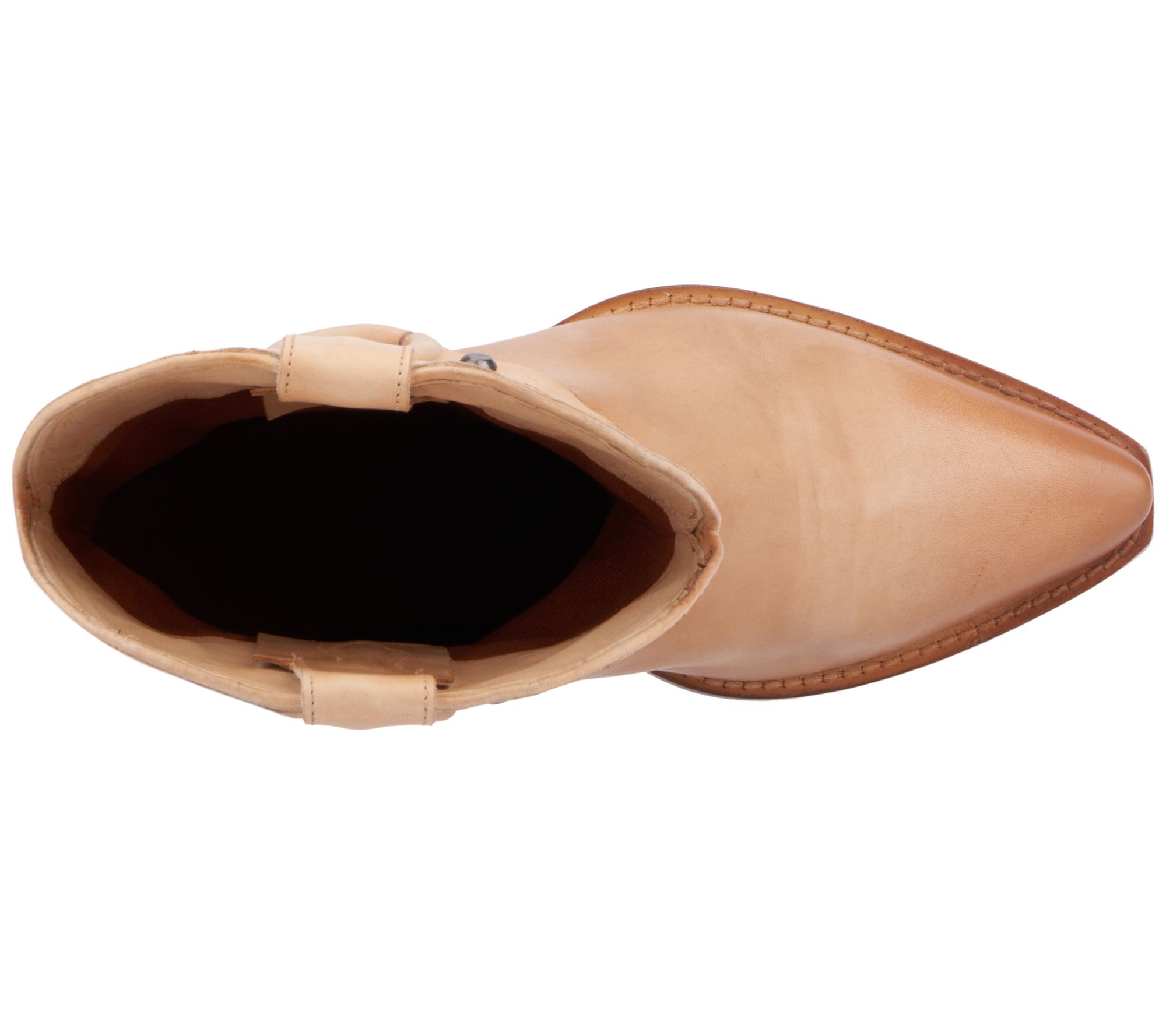 Pull-on, detailed metal-circle ring strap, front stitching, pointed toe