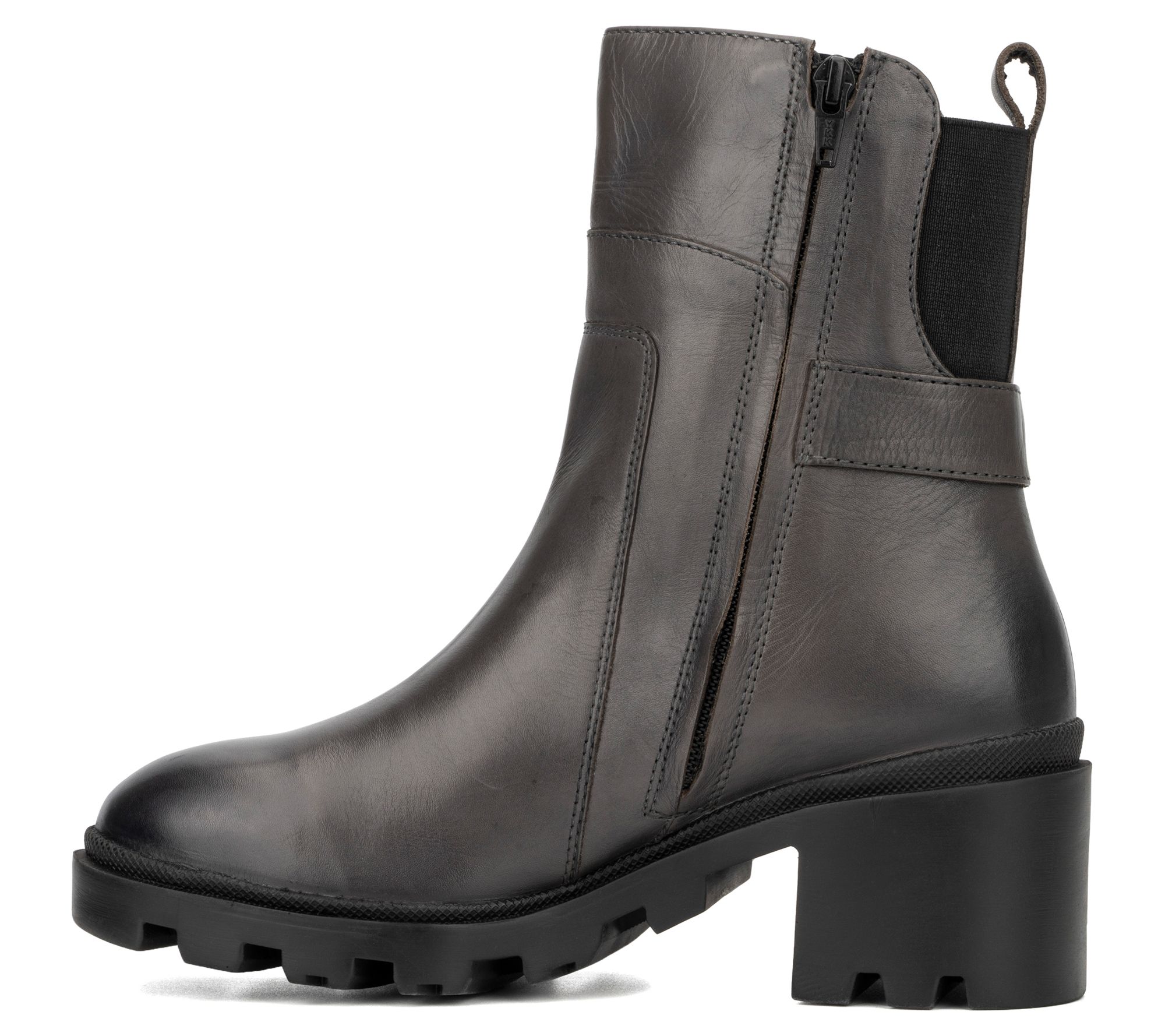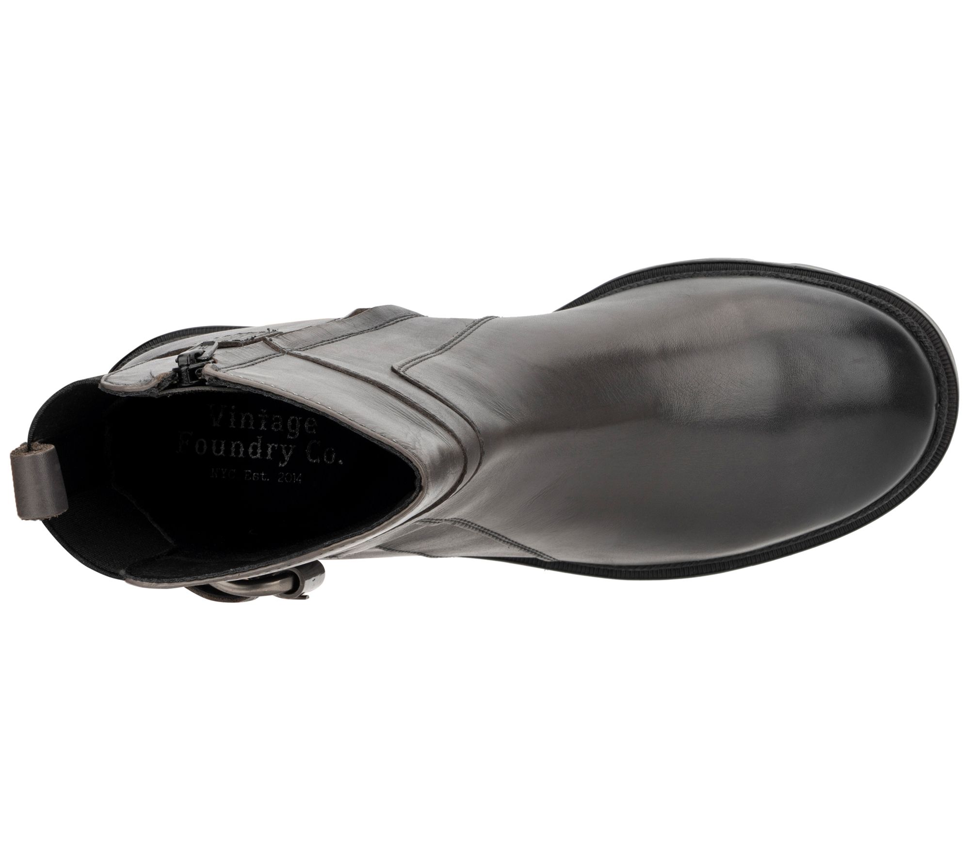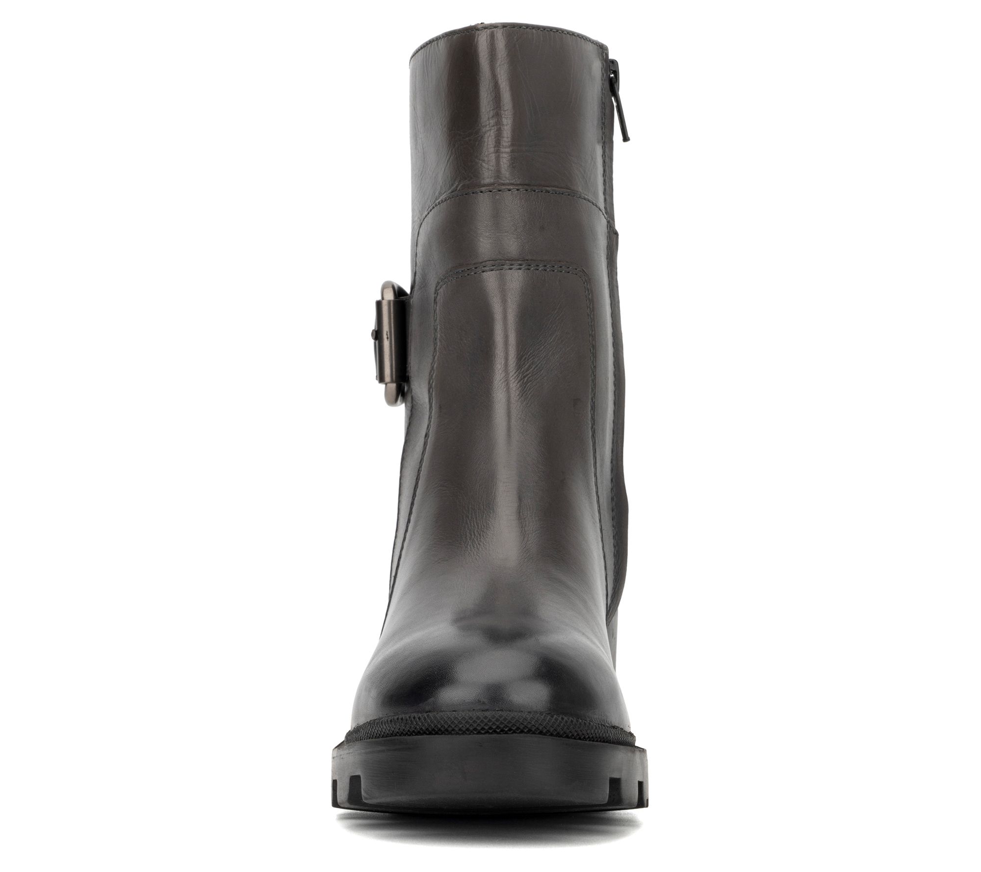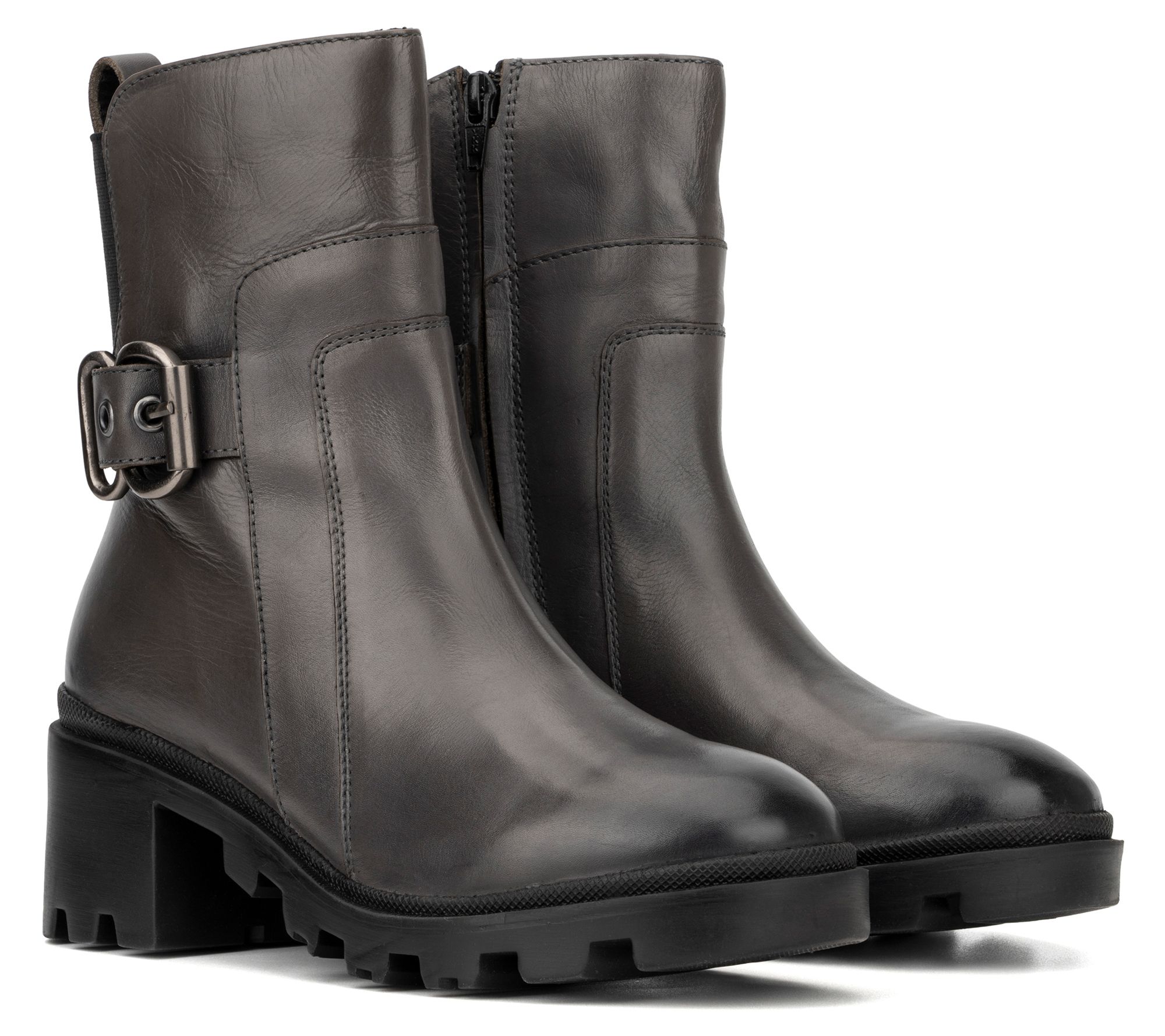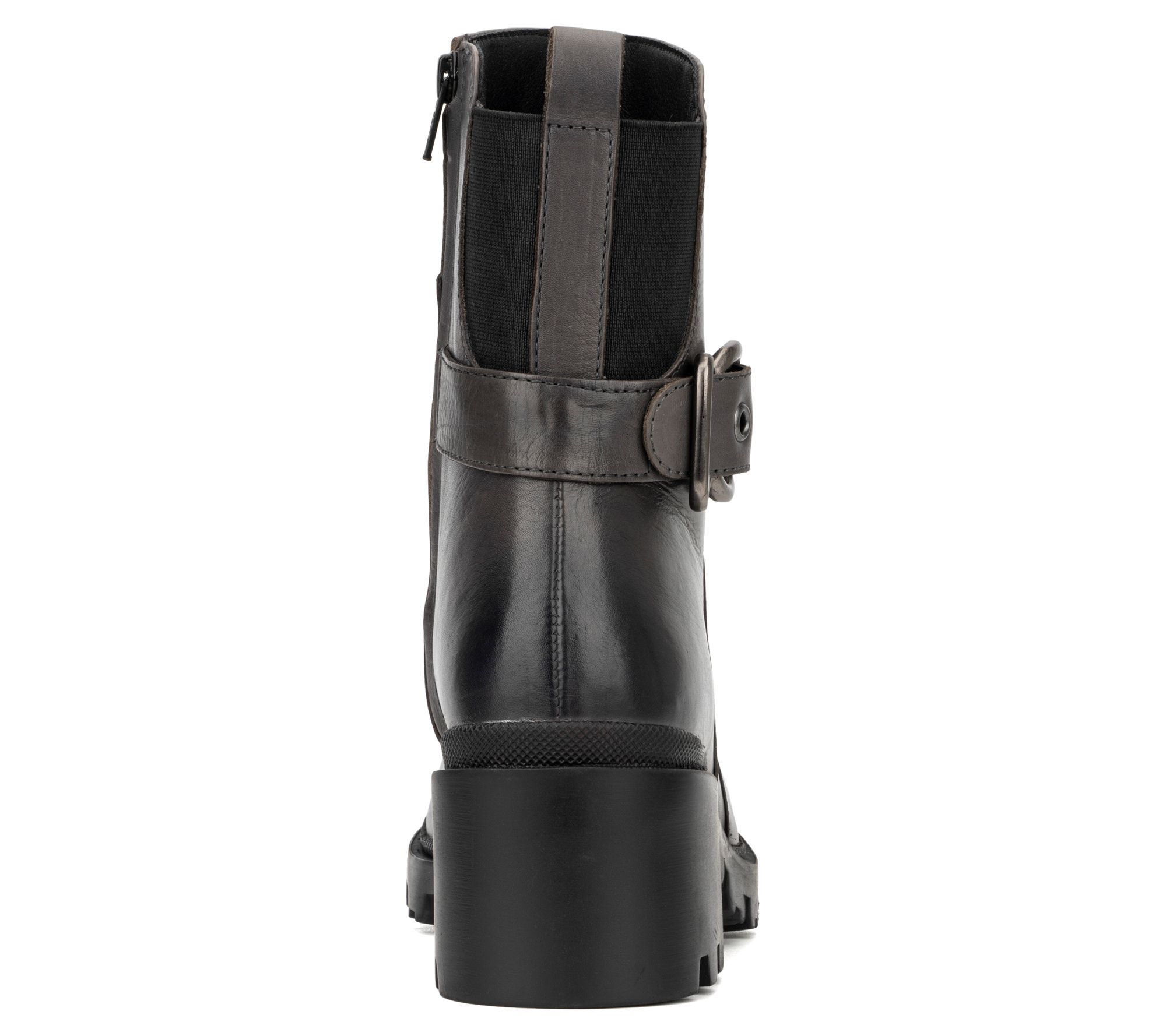 Bring a glamorous kick to your ensemble with these luxe leather boots showcasing a convenient side-zip design, buckle accents, and sturdy rubber soles. From Vintage Foundry Co.