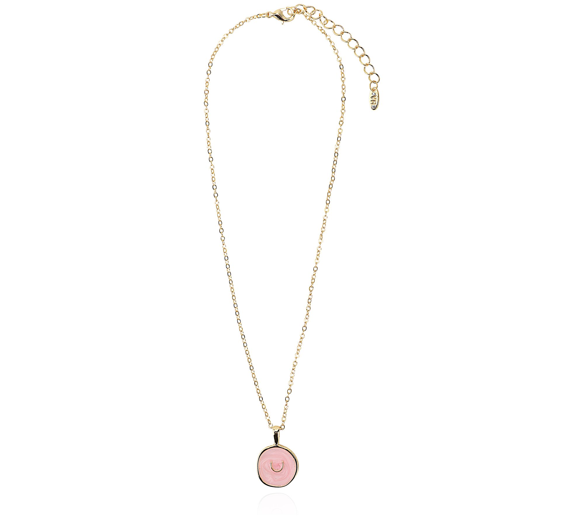 • Pink enamel pendant; cable-link chain
