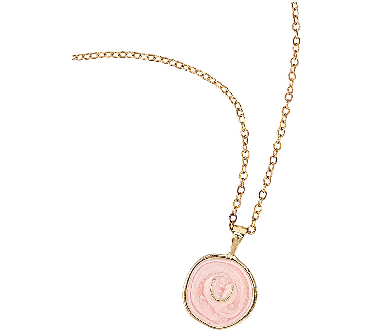 Need a touch of color to brighten your look? This pink enamel pendant hangs from a goldtone chain to beautifully accent your everyday outfits. From Vintage Havana.